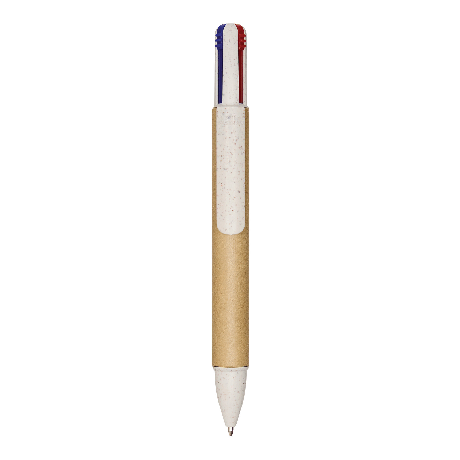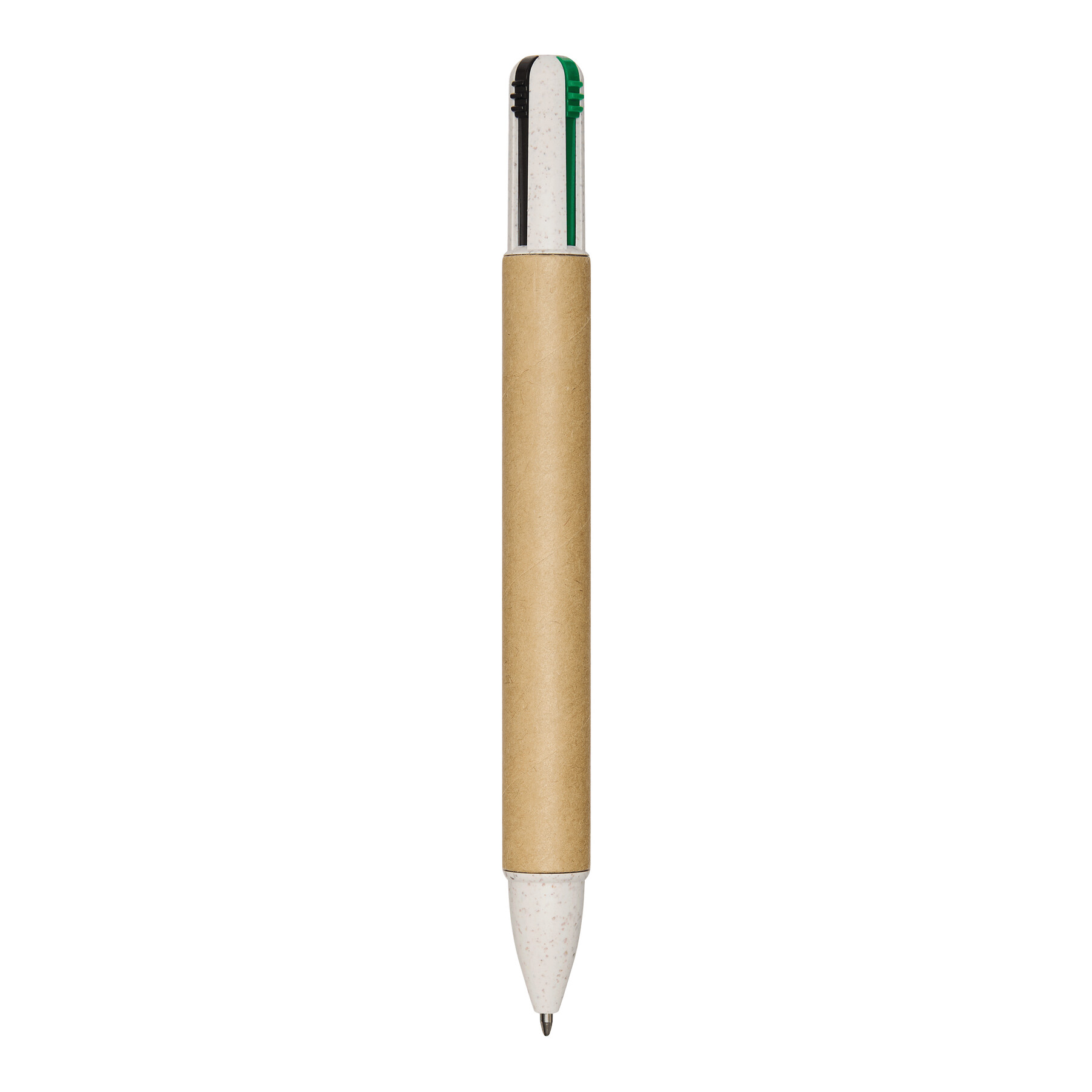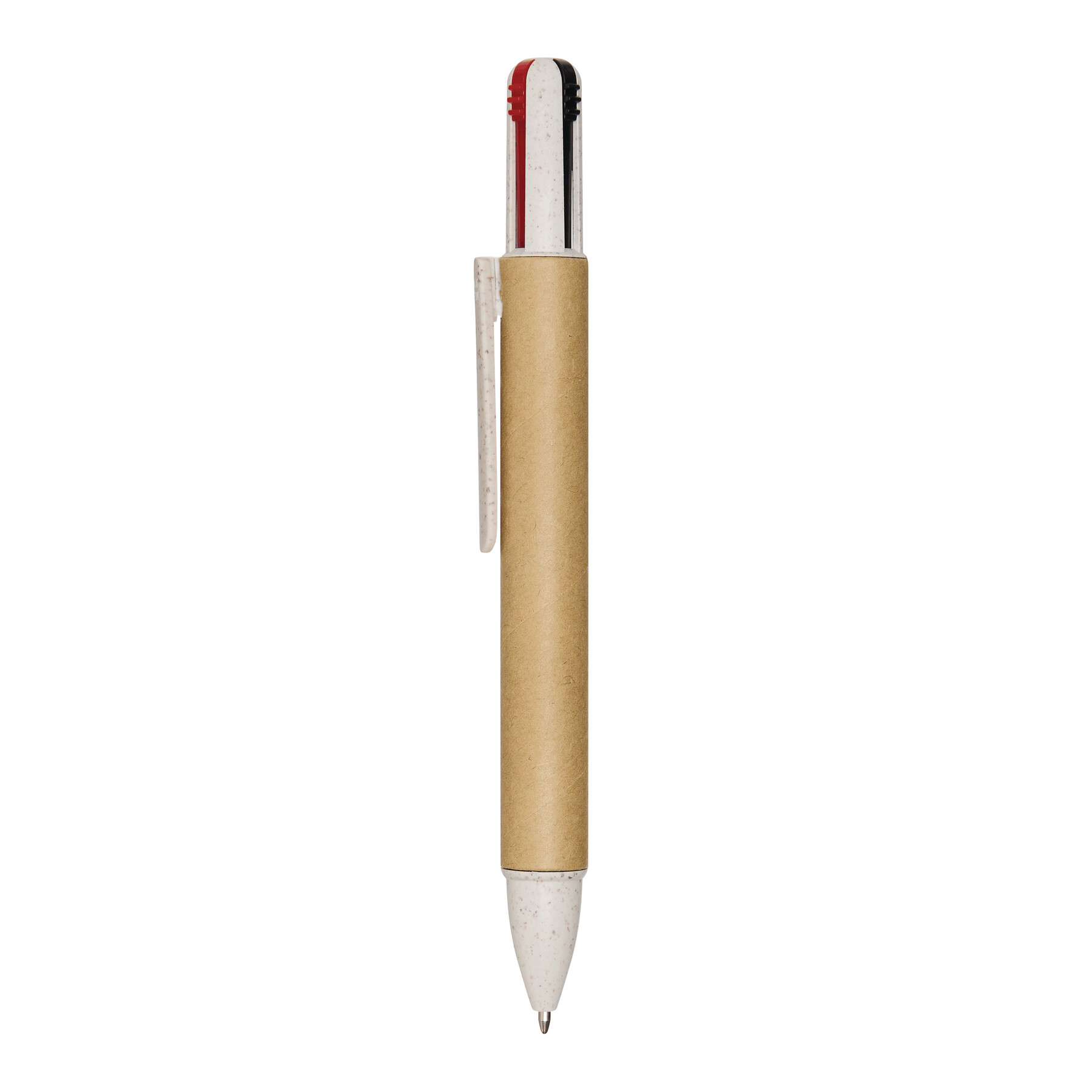 Kugelschreiber MUCO, vierfarbig: aus Weizenstroh / ABS, Schaft ummantelt mit recyceltem Karton, Druckmechanismus, Kugelschreiberminen in schwarz, rot, blau und grünschreibend
