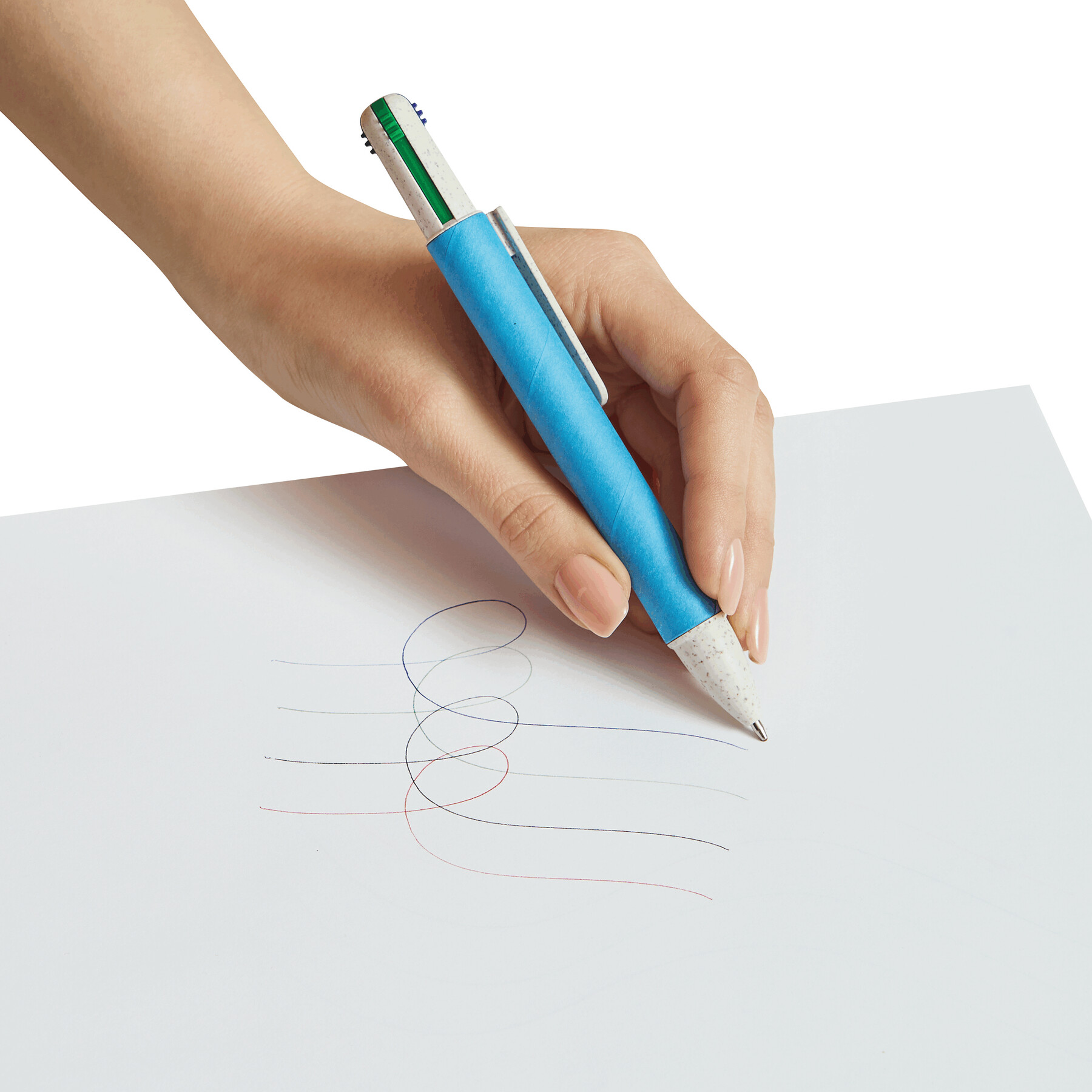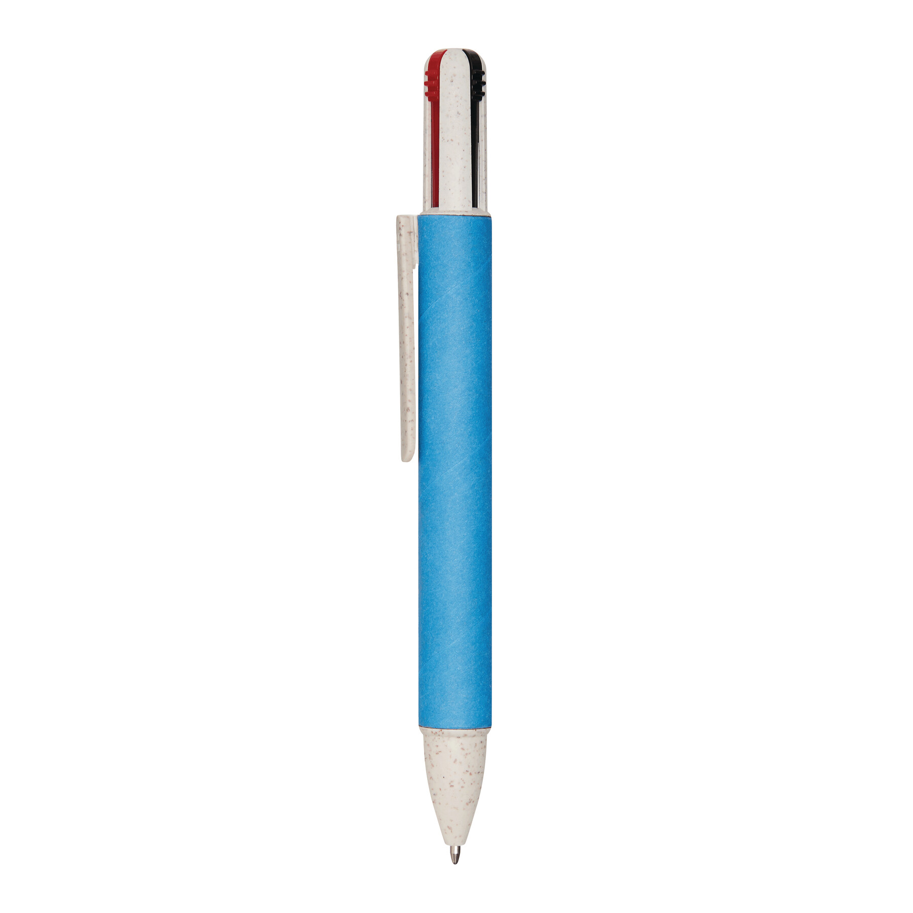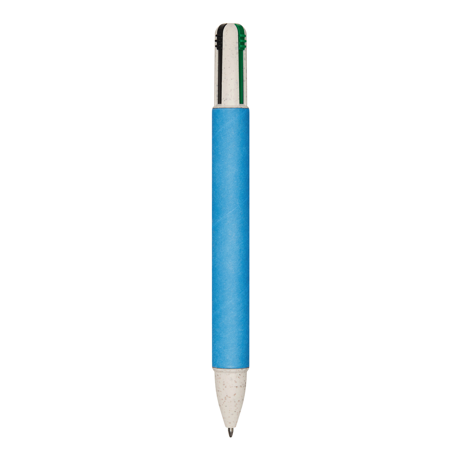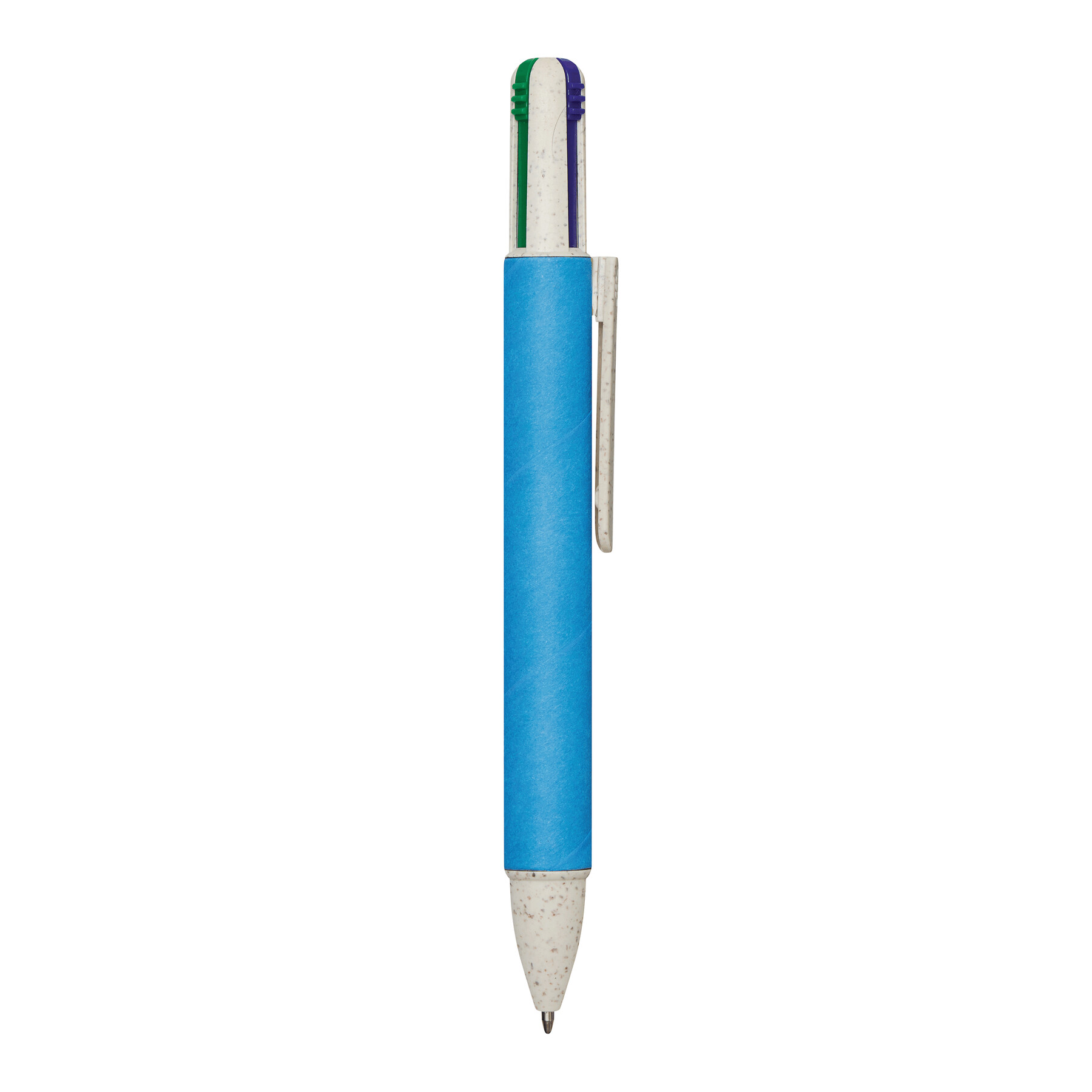 Kugelschreiber MUCO, vierfarbig: aus Weizenstroh / ABS, Schaft ummantelt mit recyceltem Karton, Druckmechanismus, Kugelschreiberminen in schwarz, rot, blau und grünschreibend