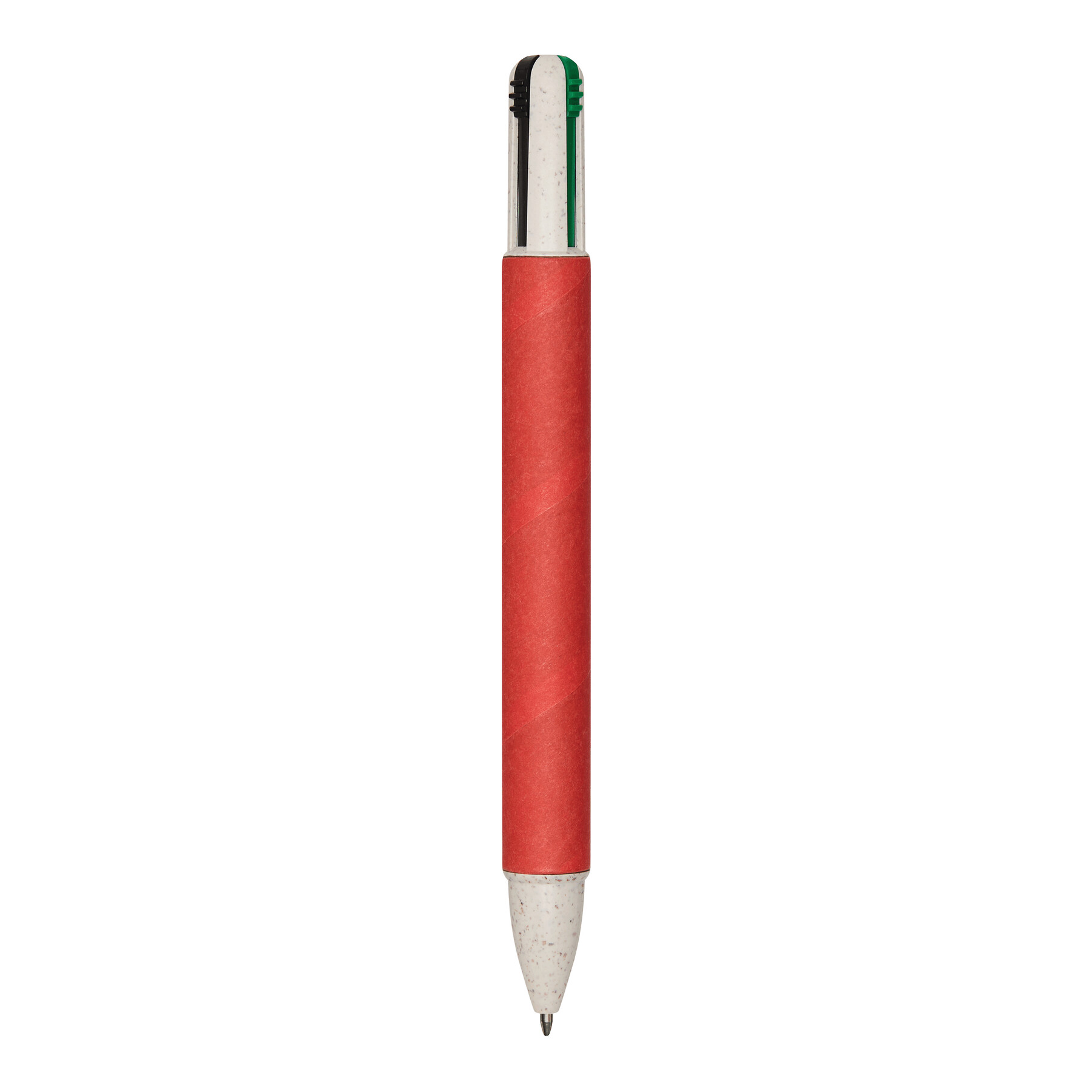Kugelschreiber MUCO, vierfarbig: aus Weizenstroh / ABS, Schaft ummantelt mit recyceltem Karton, Druckmechanismus, Kugelschreiberminen in schwarz, rot, blau und grünschreibend