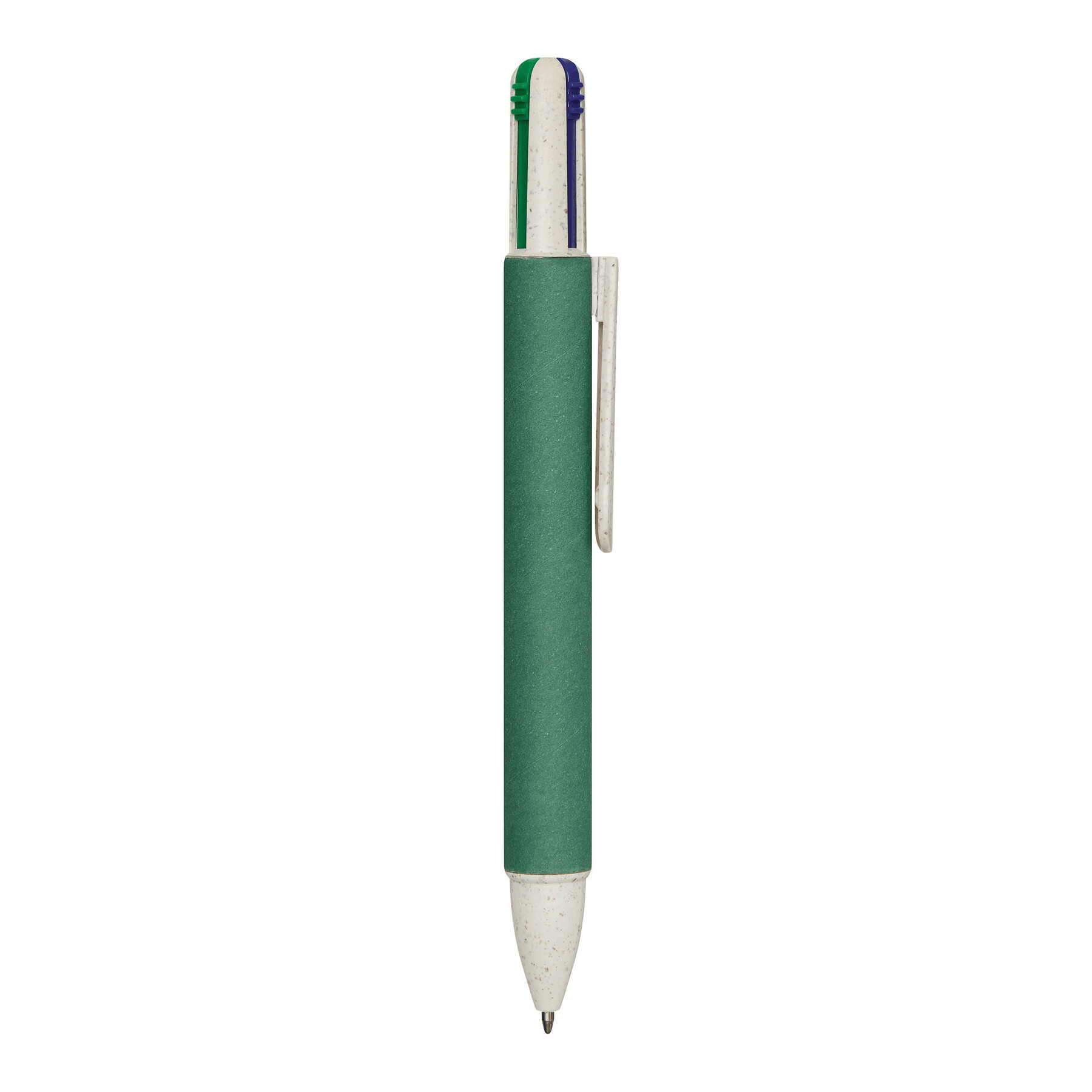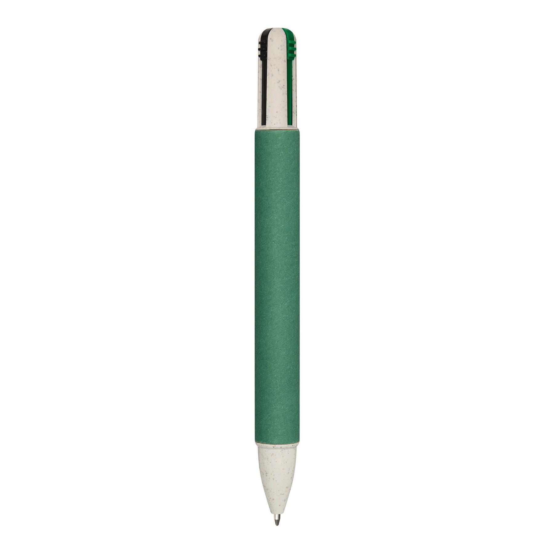Kugelschreiber MUCO, vierfarbig: aus Weizenstroh / ABS, Schaft ummantelt mit recyceltem Karton, Druckmechanismus, Kugelschreiberminen in schwarz, rot, blau und grünschreibend