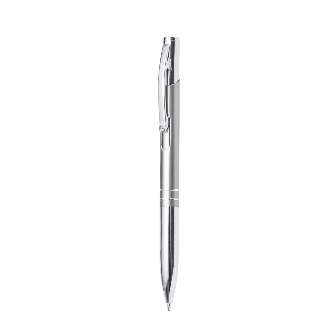 Origineller Kugelschreiber mit Druckknopfmechanik, im eleganten zweifarbigen Design. Gestanzter Aluminiumschaft mit glatter Oberfläche in verschiedenen Farben. Originaler Clip, Ringe und Spitze in Silberfinish. Blaue Tinte.
