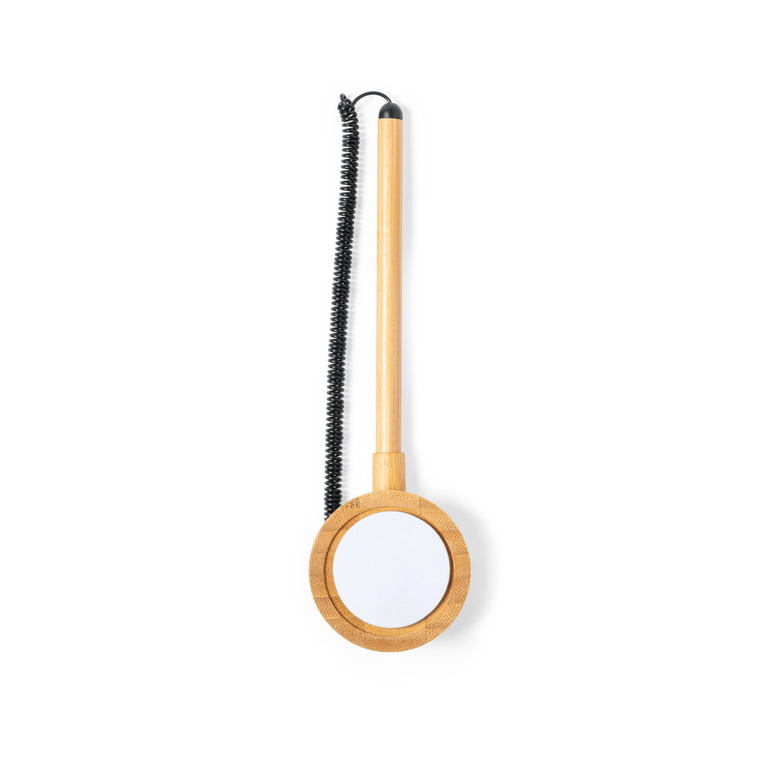 Linie Natur Kugelschreiber aus Bambus, mit blauschreibender Tinte und ausziehbarer Schnur. Inklusive Bambushalterung für den Stift, mit 3M-Kleber an der Basis, extra starke und rückstandsfreie Fixierung beim Abziehen. Präsentiert in einer individuellen Kraft-Design-Box.