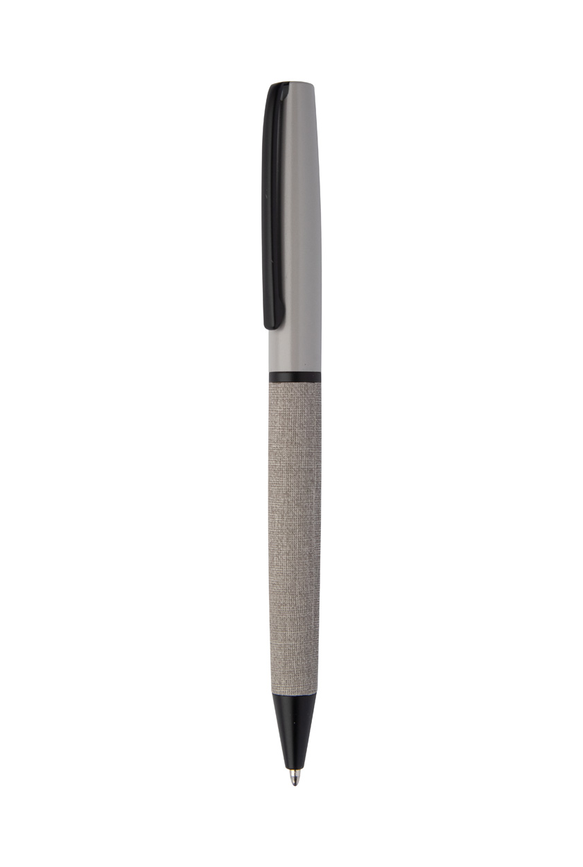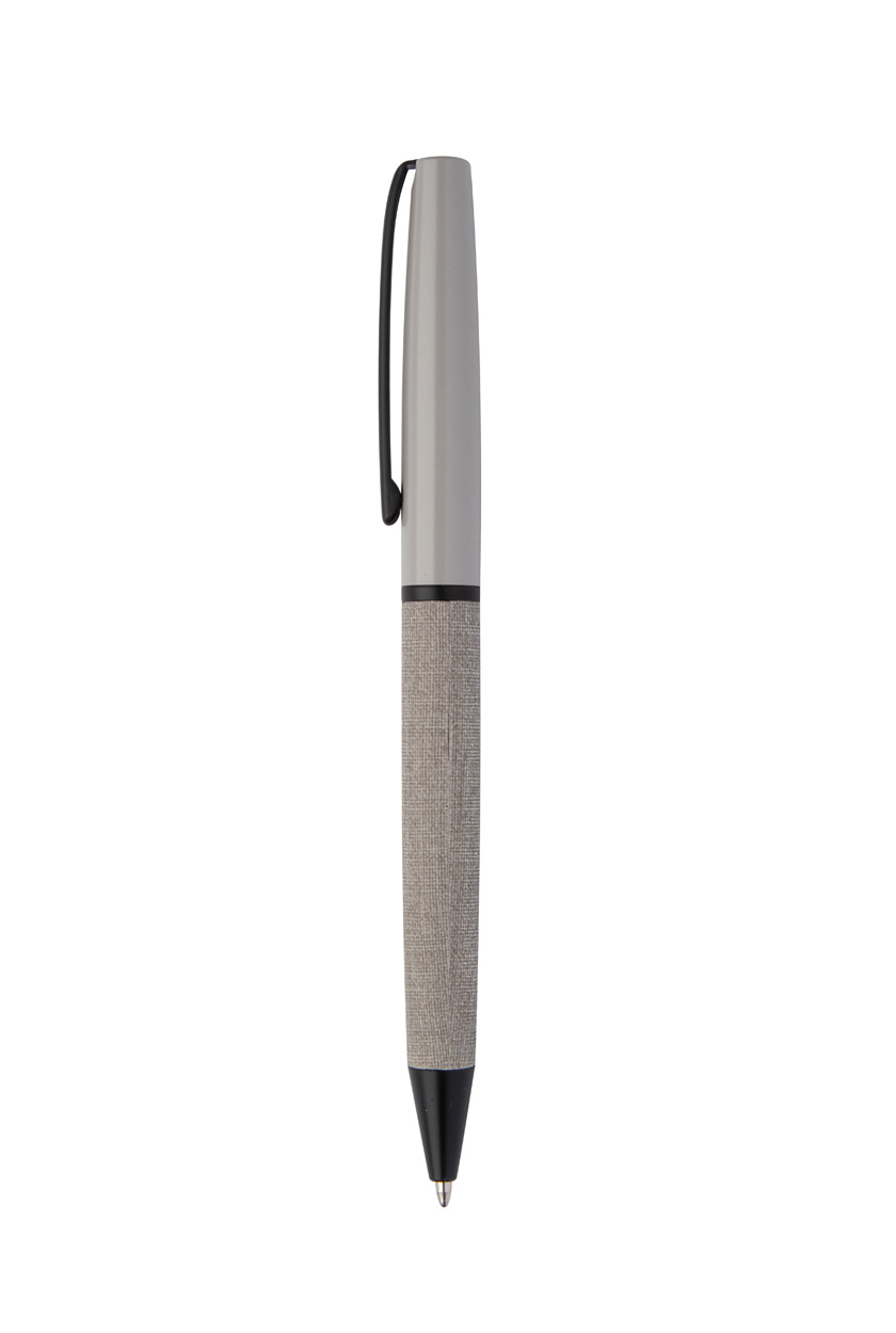 Eleganter Drehkugelschreiber aus Metall mit Schaft aus PU-Leder und schwarzen Teilen. In schwarzer Geschenkbox. Mit blauschreibender Mine.