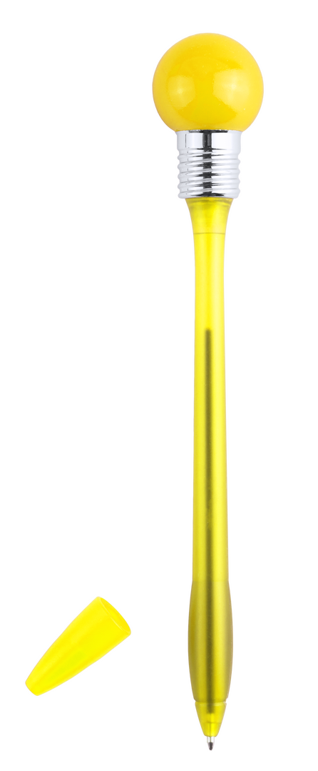 Lustiger Glühbirnen-Kugelschreiber mit geschmeidigem Schaft in lebendigen transparenten Farben. Mit rundem, gummiertem Licht in farblich passender Farbe, das aktiviert wird, wenn man den Stift auf eine harte Oberfläche fallen lässt. Mit Kappe in passender Farbe und blauer Tinte.