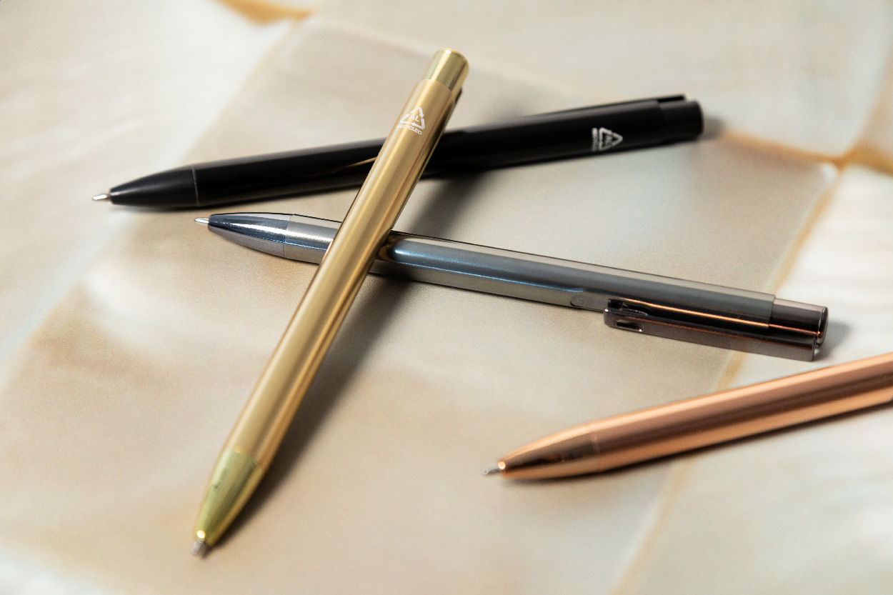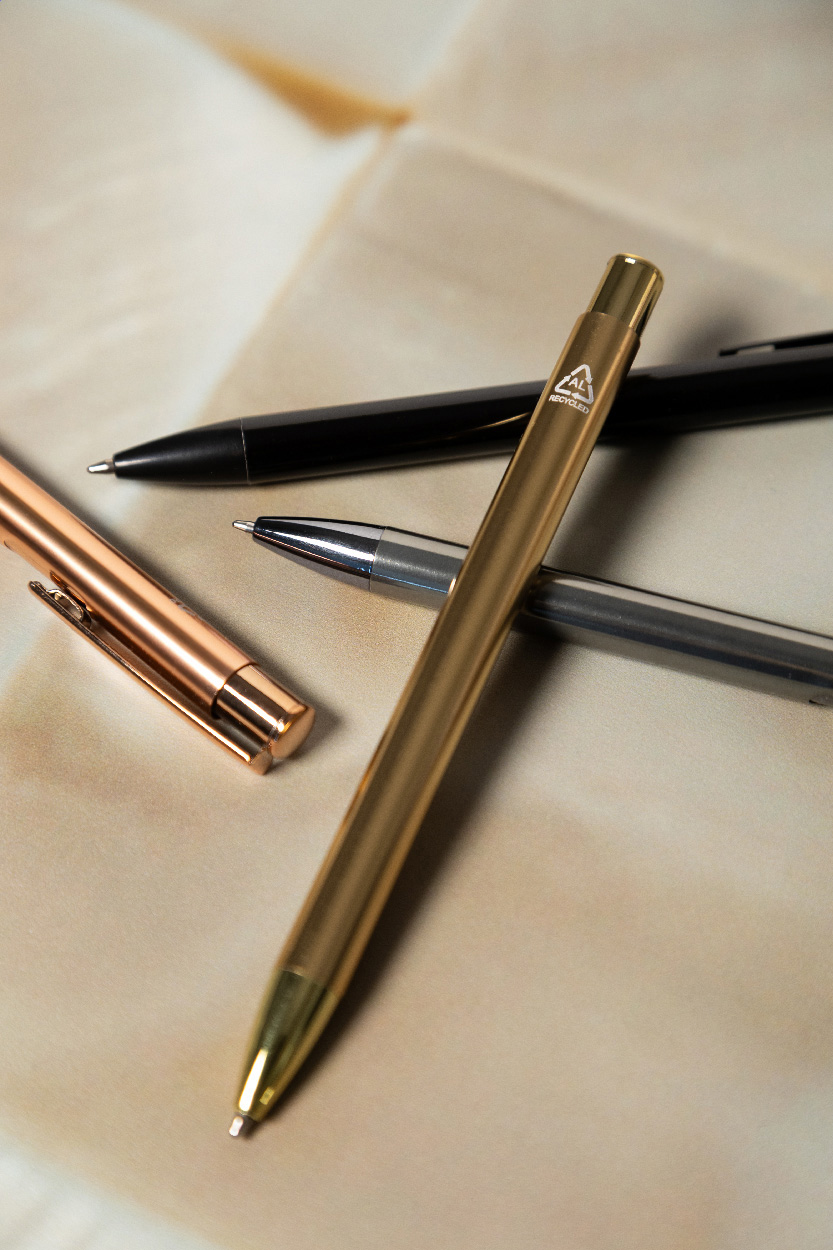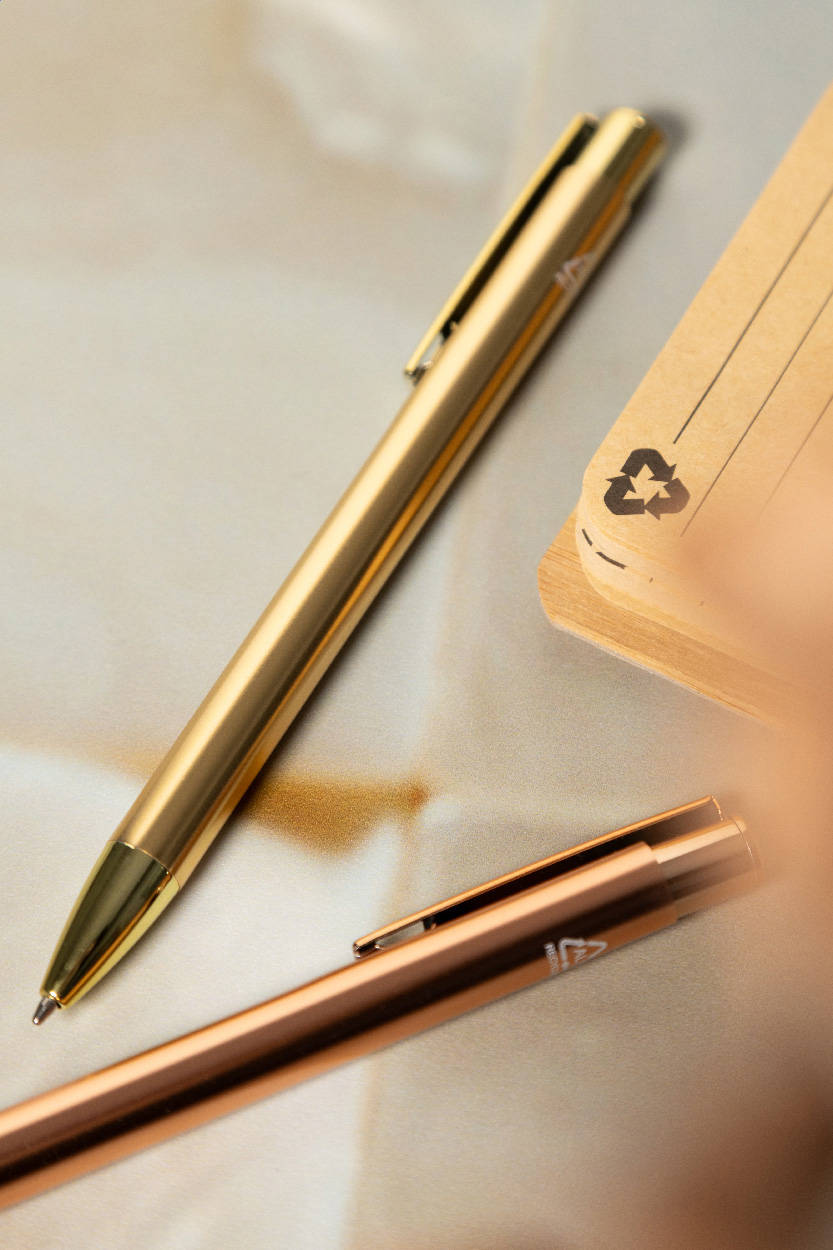 Beatriz Kugelschreiber aus recyceltem Messing (blaue Mine)