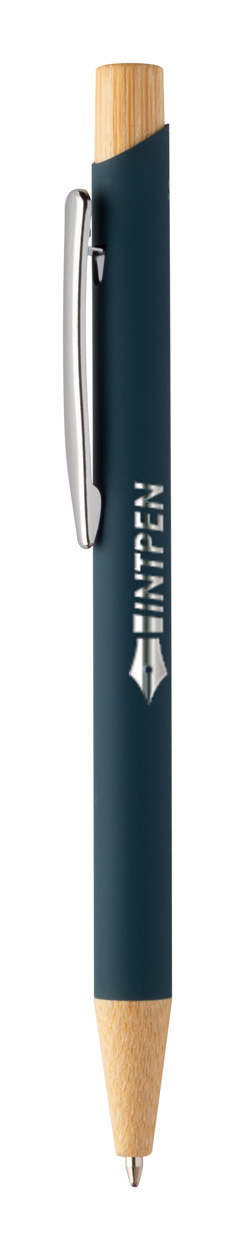 Kugelschreiber aus recyceltem Aluminium mit Bambus-Elementen, gummierter Oberfläche und verchromten Clip. Mit Spezialbeschichtung für Spiegelgravuren. Blauschreibend.