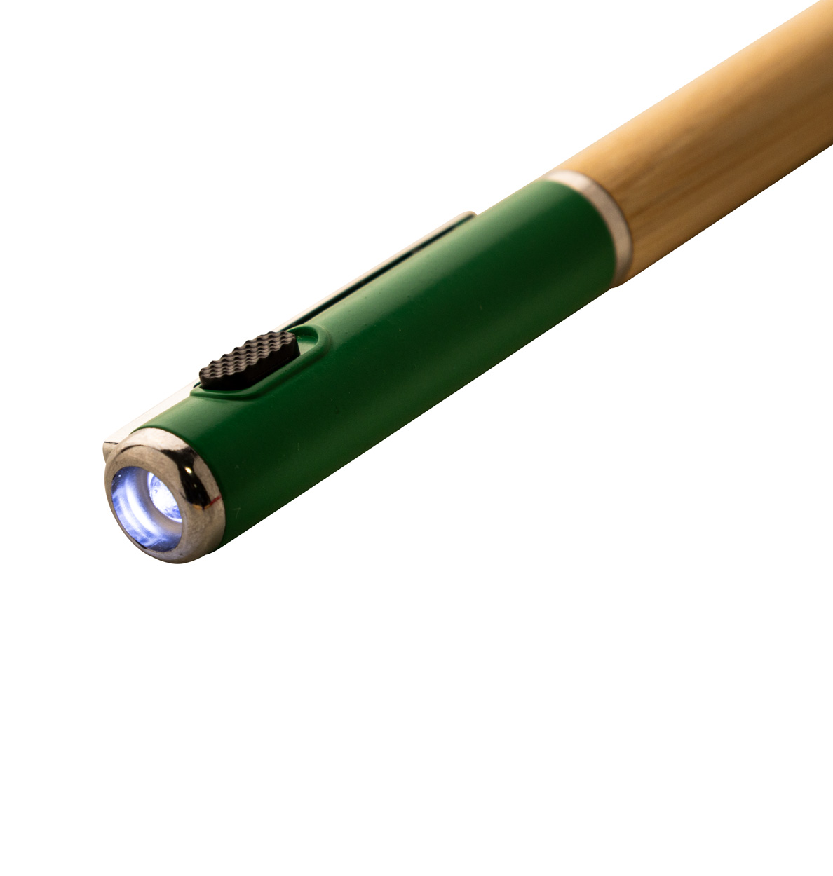 Drehkugelschreiber aus Bambus und recyceltem ABS Kunststoff mit 1 LED Taschenlampe (inkl. Knopfzellenbatterie). Blauschreibend.
