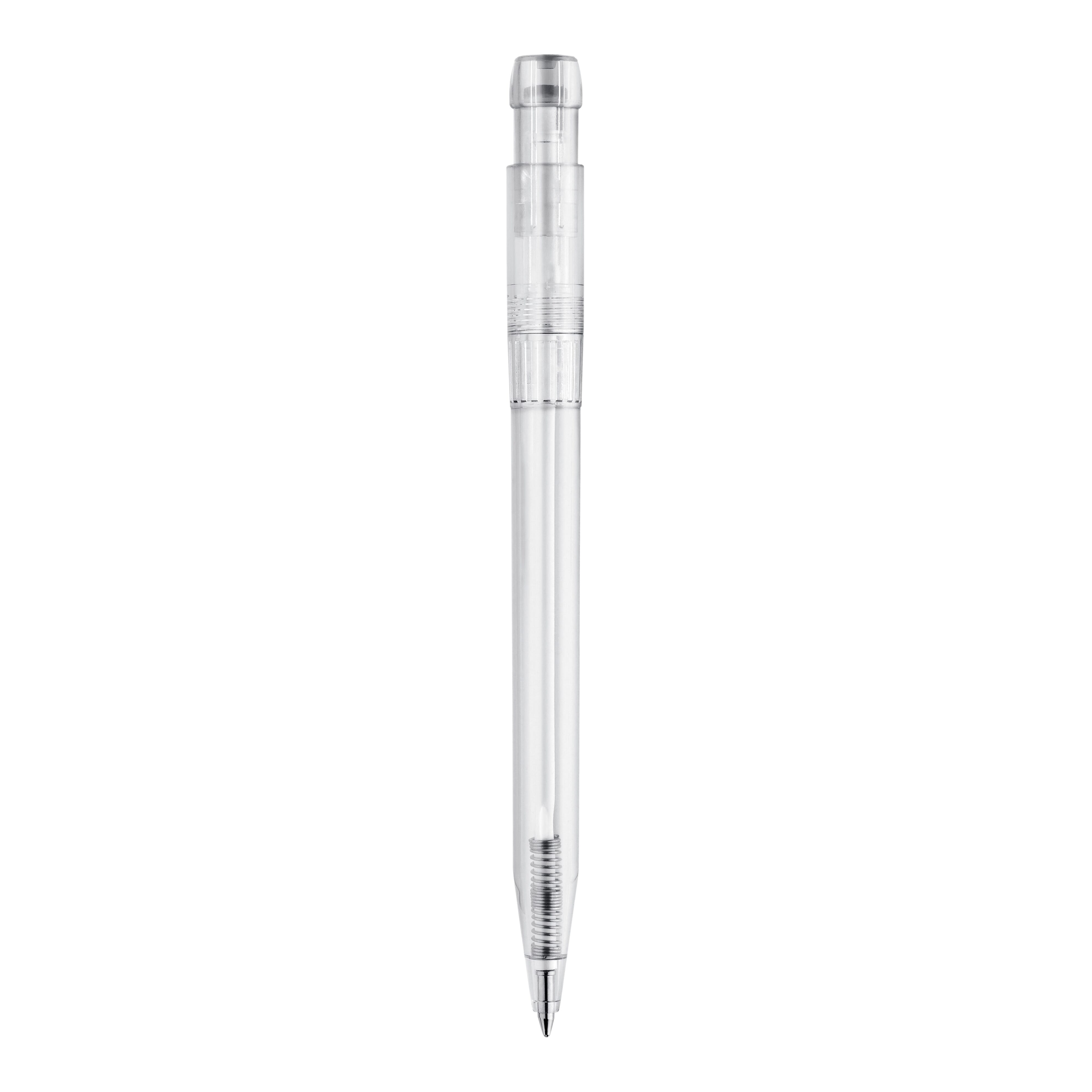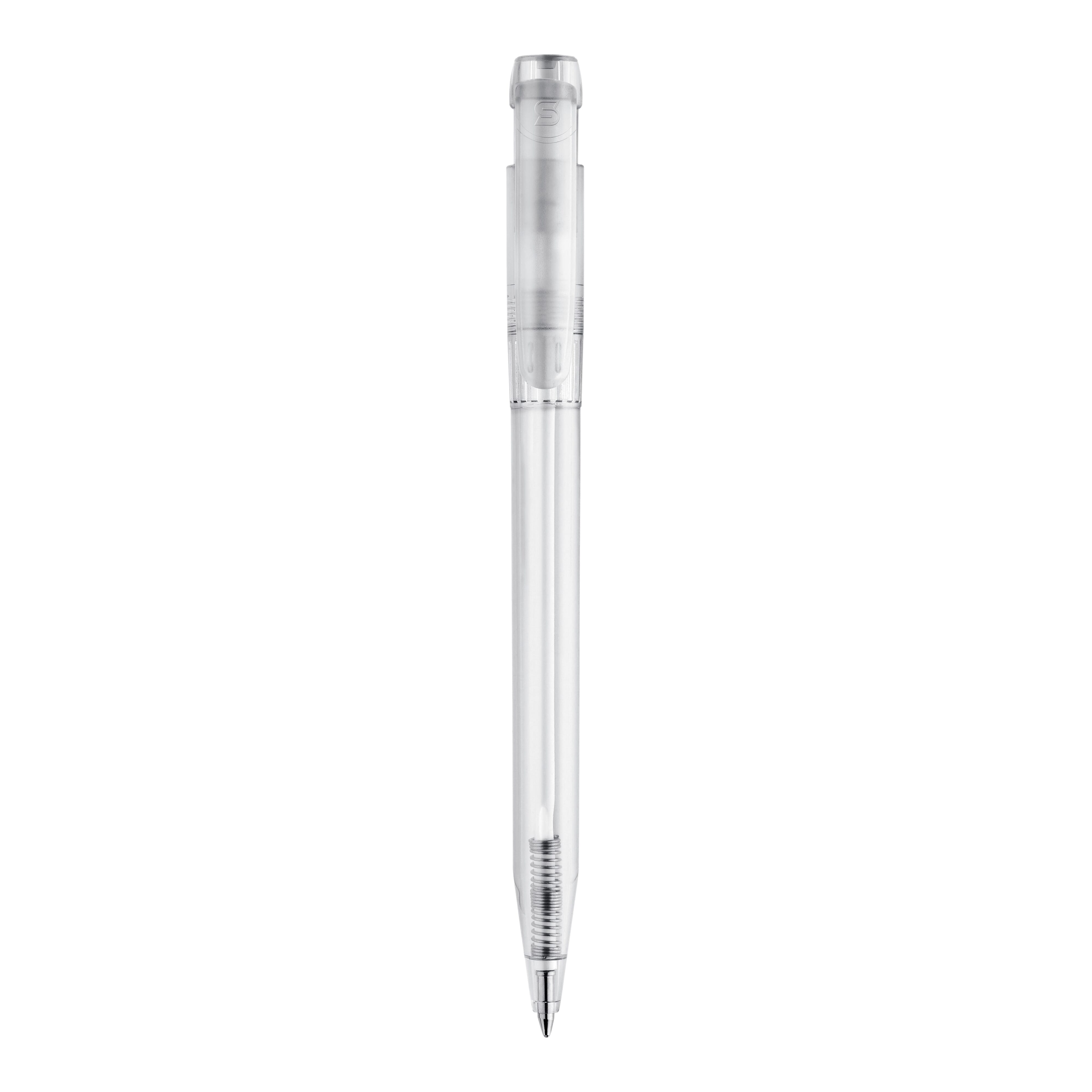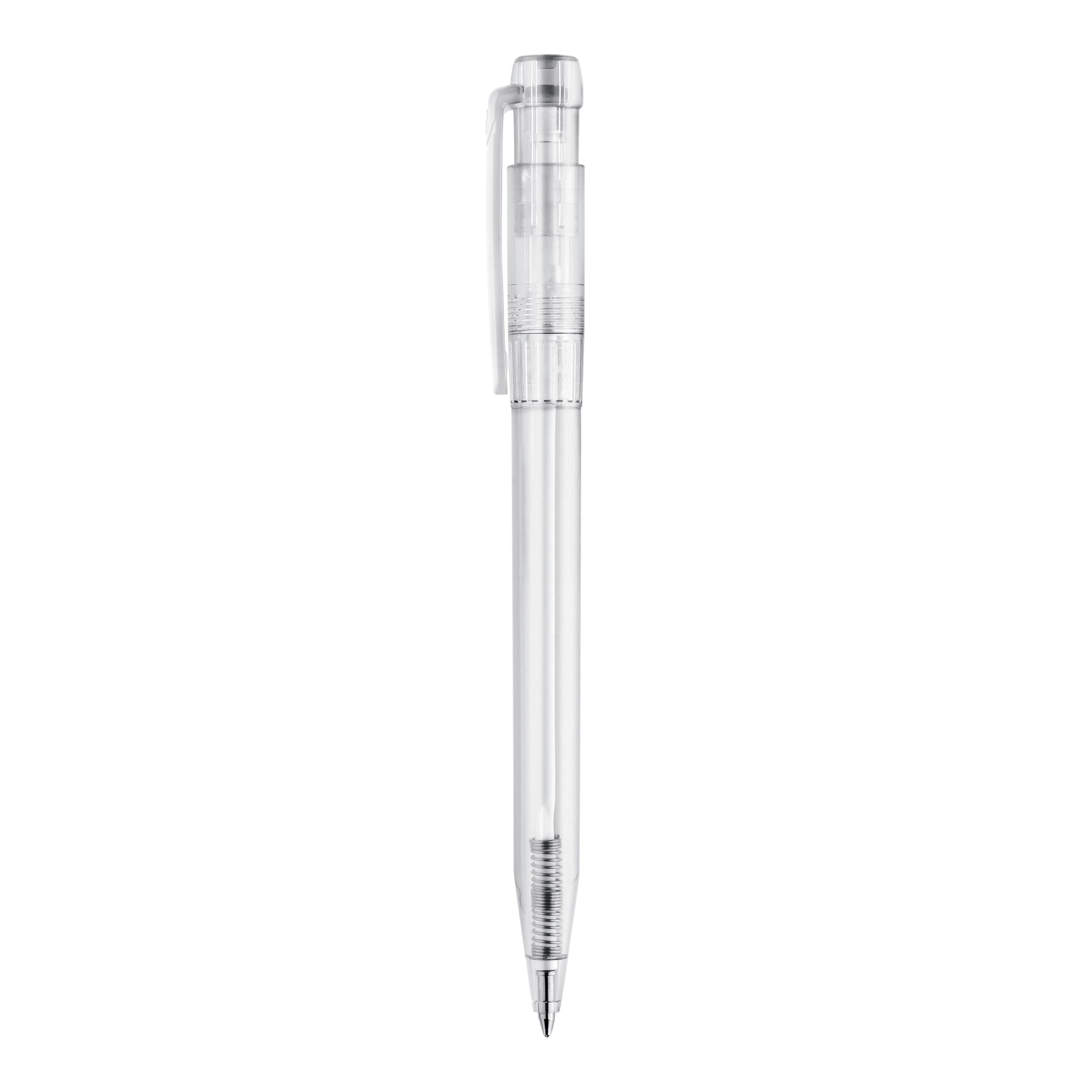 Schlanker transparenter Kugelschreiber in ansprechenden Farben. Ein schöner Werbeartikel wegen seiner Druckfläche. Mit synthetischer blau schreibender X20-Refill-Mine. Druckkugelschreiber aus ABS, hergestellt in Europa. Ab einer Abnahmemenge von 5.000 Stück sind eigene Farbkombinationen möglich.