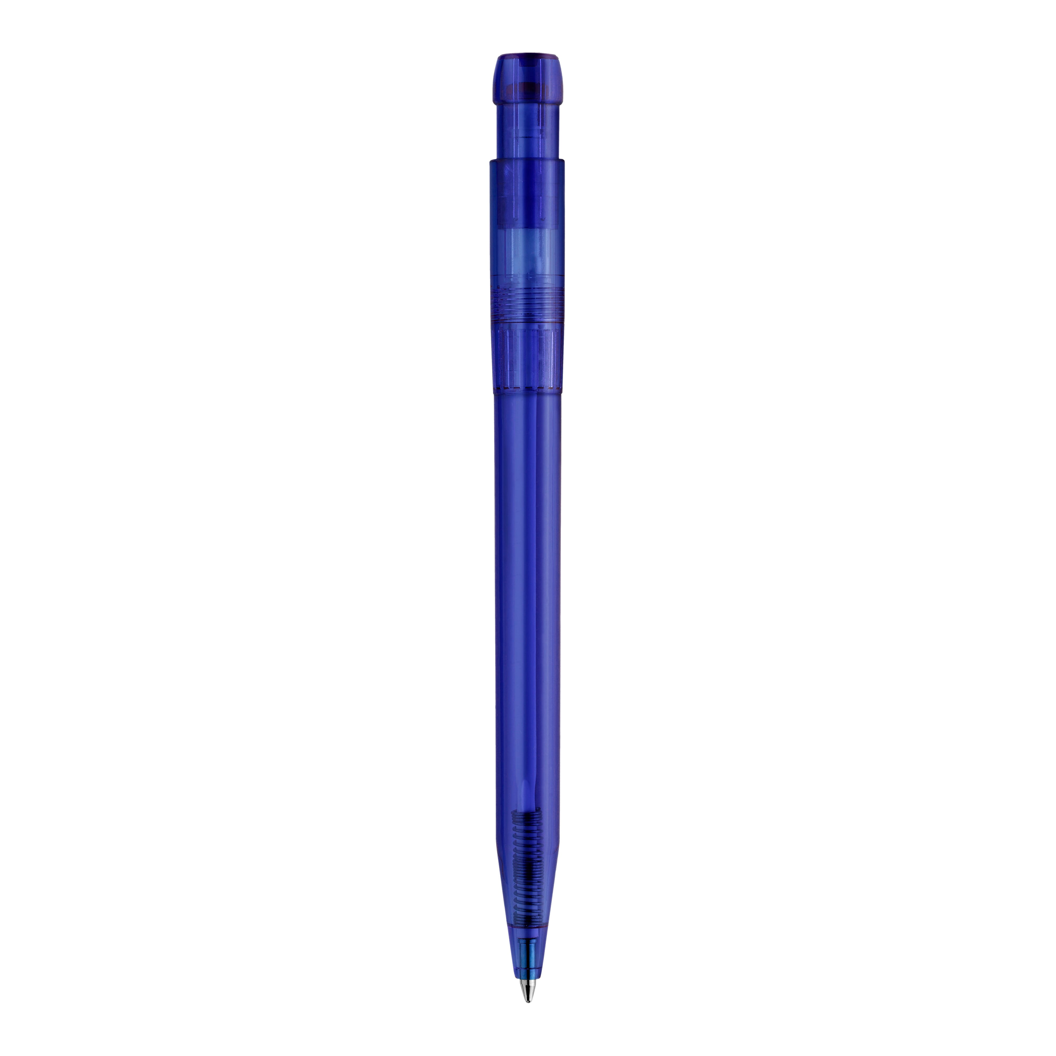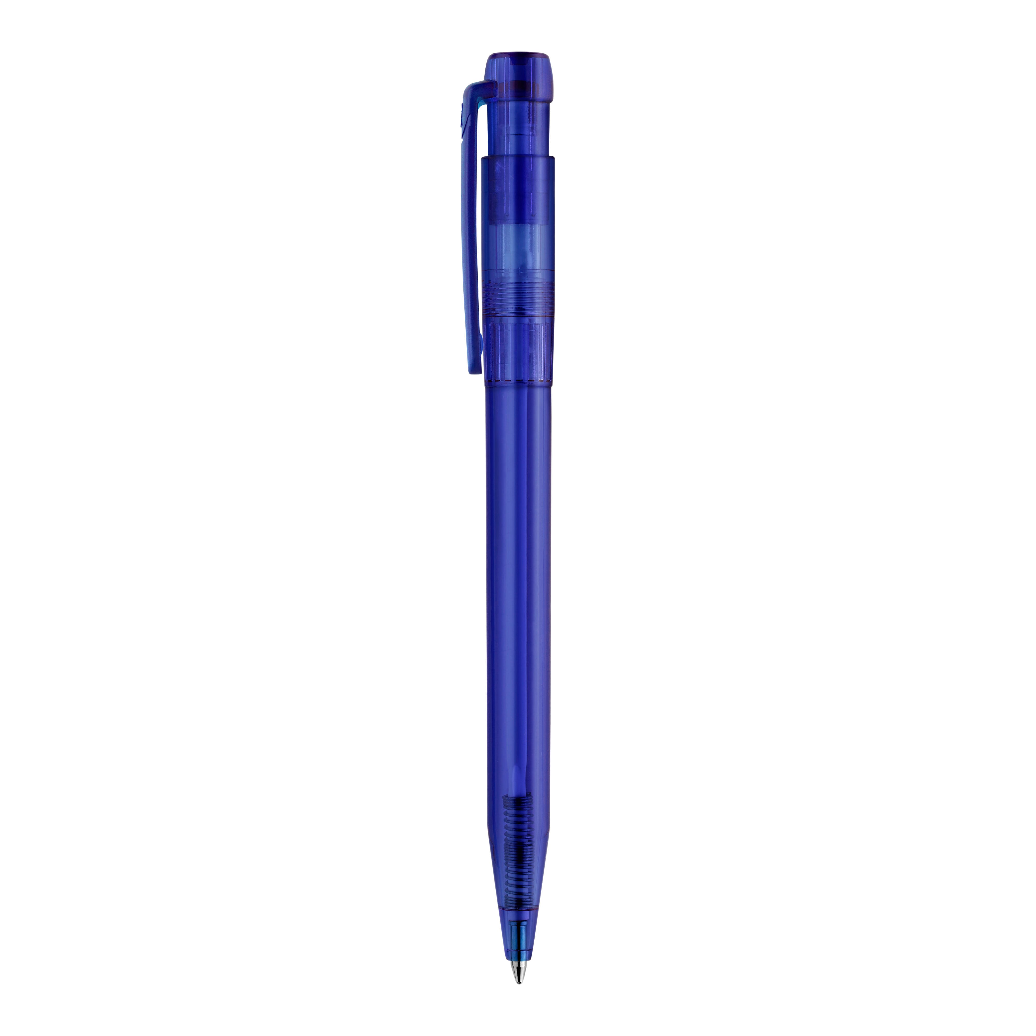 Schlanker transparenter Kugelschreiber in ansprechenden Farben. Ein schöner Werbeartikel wegen seiner Druckfläche. Mit synthetischer blau schreibender X20-Refill-Mine. Druckkugelschreiber aus ABS, hergestellt in Europa. Ab einer Abnahmemenge von 5.000 Stück sind eigene Farbkombinationen möglich.