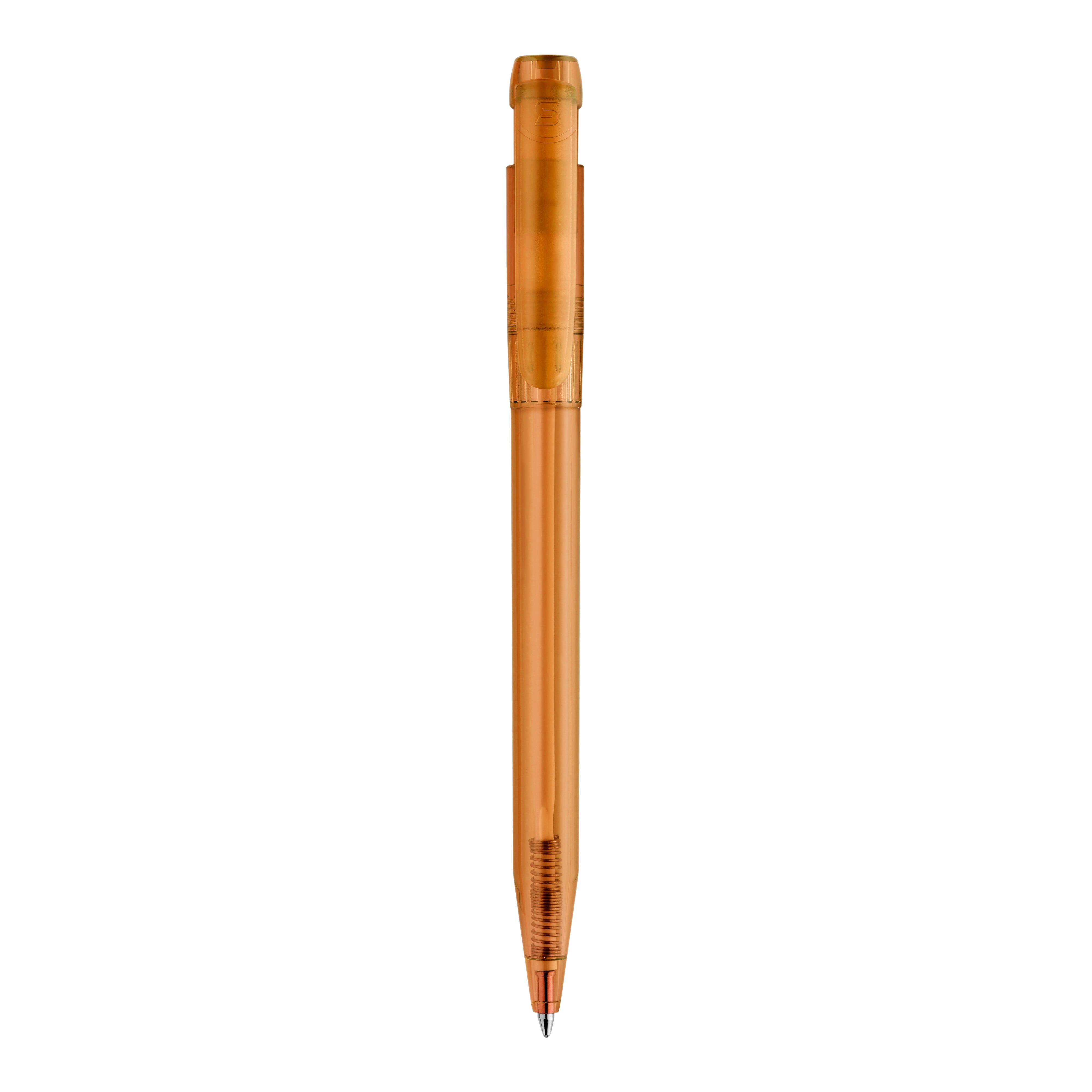 Schlanker transparenter Kugelschreiber in ansprechenden Farben. Ein schöner Werbeartikel wegen seiner Druckfläche. Mit synthetischer blau schreibender X20-Refill-Mine. Druckkugelschreiber aus ABS, hergestellt in Europa. Ab einer Abnahmemenge von 5.000 Stück sind eigene Farbkombinationen möglich.