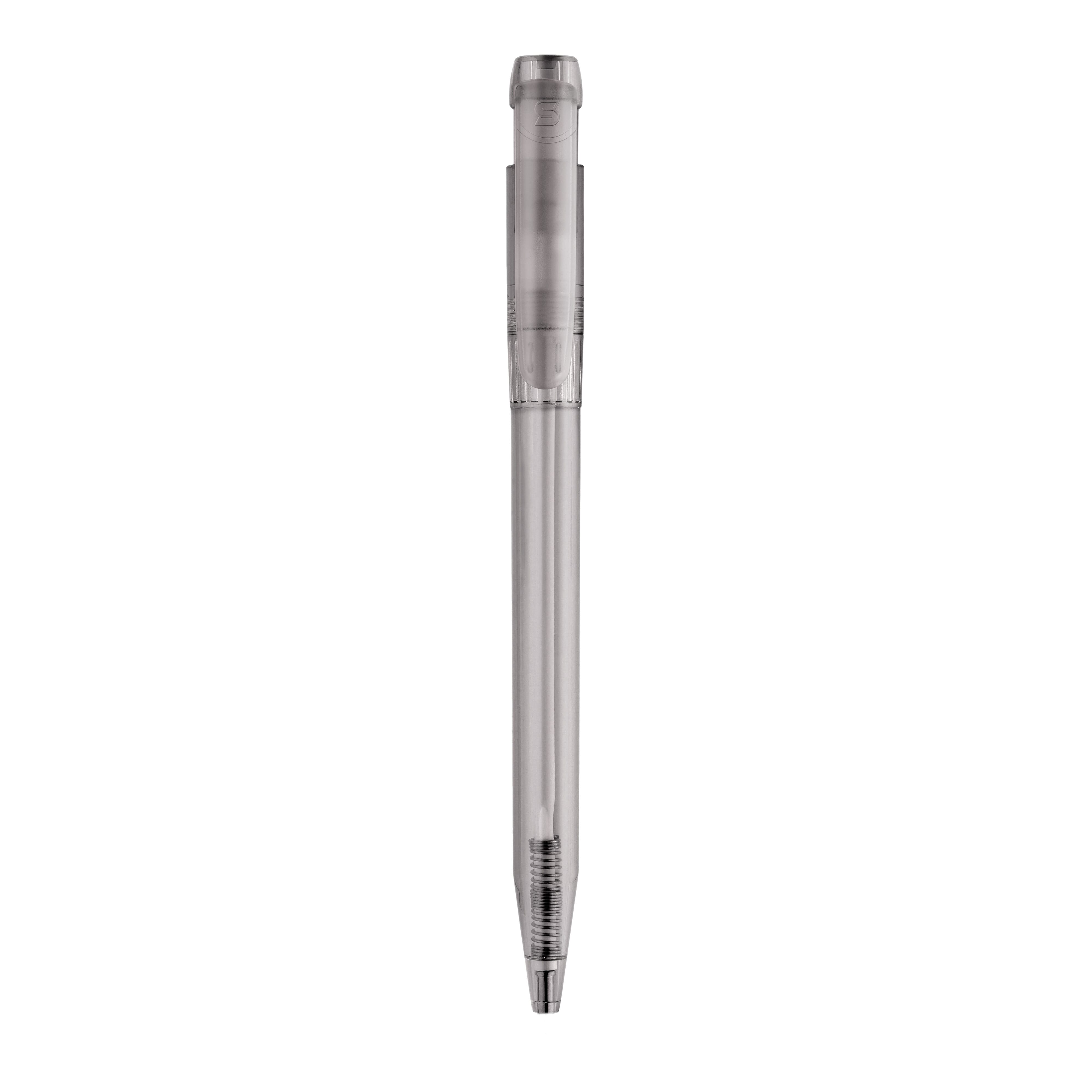 Schlanker transparenter Kugelschreiber in ansprechenden Farben. Ein schöner Werbeartikel wegen seiner Druckfläche. Mit synthetischer blau schreibender X20-Refill-Mine. Druckkugelschreiber aus ABS, hergestellt in Europa. Ab einer Abnahmemenge von 5.000 Stück sind eigene Farbkombinationen möglich.