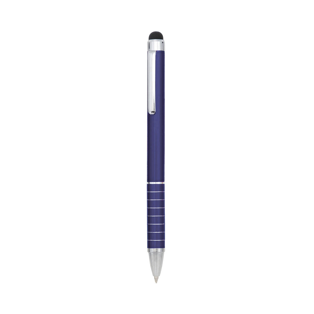 Dreh-Kugelschreiber mit Aluminiumgehäuse in Metallic-Ausführung in kräftigen Farben. Mit Stylus. Kontrastelemente und Ringe in Silber. Origineller Ring-Griff und blaue Tinte.