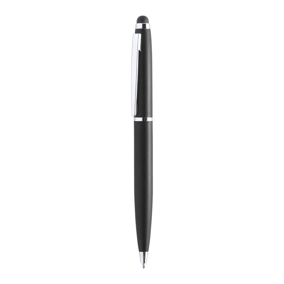 Dreh-Kugelschreiber mit Stylus und Metallgehäuse in kräftigen Farben. Kontrastdetails und Ringe in Silber. Blaue Tinte.