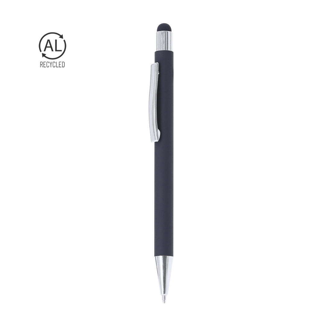 Kugelschreiber mit Spitzendruckmechanismus aus recyceltem Aluminium. Druckknopf und Metallclip in verchromter Ausführung, Spitze aus passendem Material. Gehäuse mit Gummibeschichtung, besonders für Lasergravur entworfen. Merkmal von recyceltem Aluminium auf der Oberseite des Kugelschreibers. Jumbo-Patrone und blaue Tinte. Recyceltes Aluminium ist ein Material mit fast unendlichen Recyclingmöglichkeiten, ohne seine ursprünglichen Eigenschaften zu verlieren und dabei weniger Energie in diesem Prozess zu verbrauchen. GRS-Zertifizierung (Global Recycled Standard), die den recycelten Ursprung des verwendeten Materials zur Herstellung des Produkts gewährleistet.