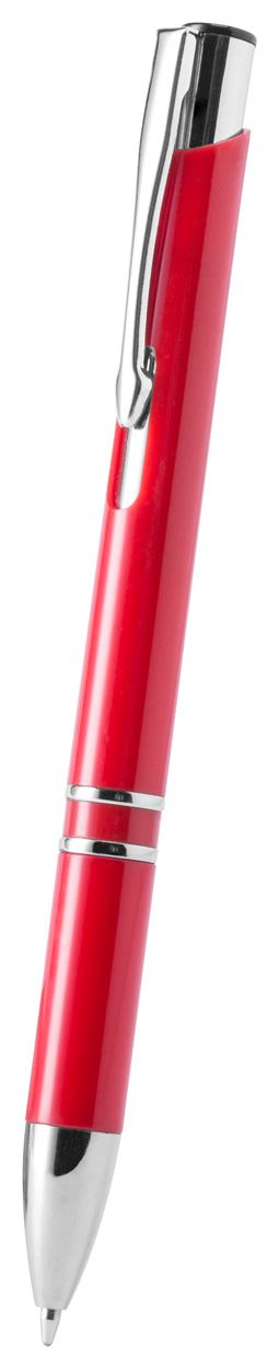 Kunststoff-Kugelschreiber mit glänzender Spitze und Clip, blauschreibend.