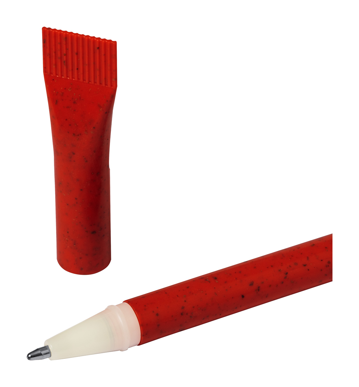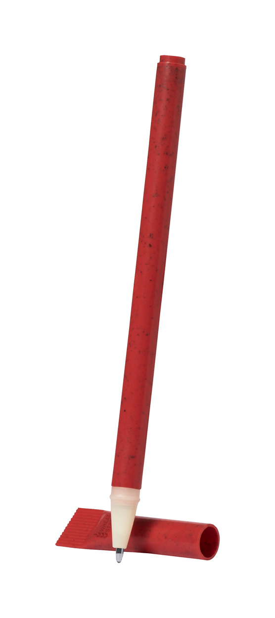 Kugelschreiber aus ökologischem Weizenstrohkunststoff mit farblich angepasster Kappe, blauschreibend.