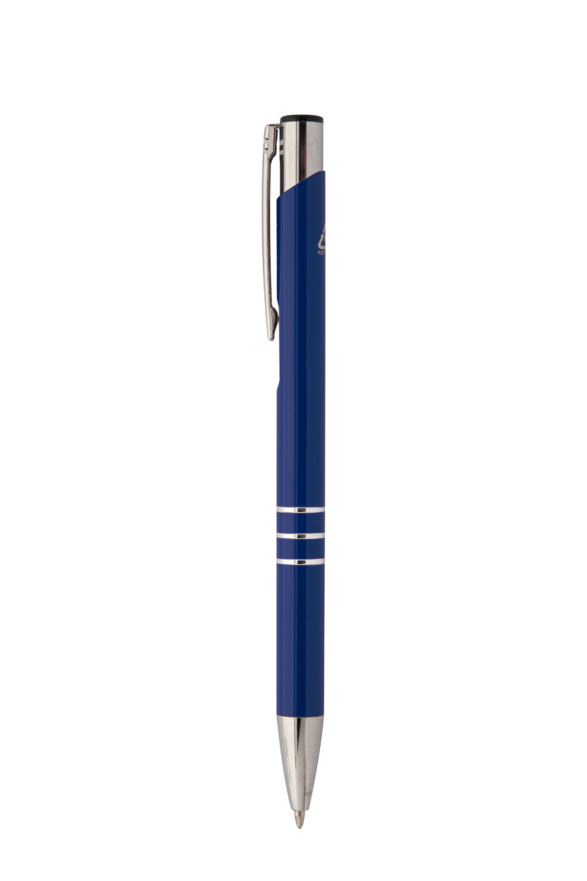 Kugelschreiber aus recyceltem Aluminium, blauschreibend.