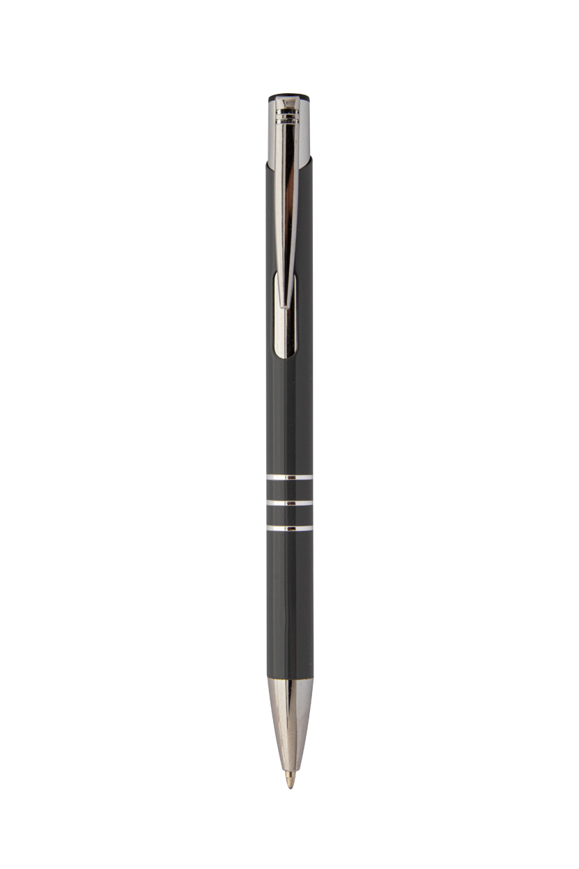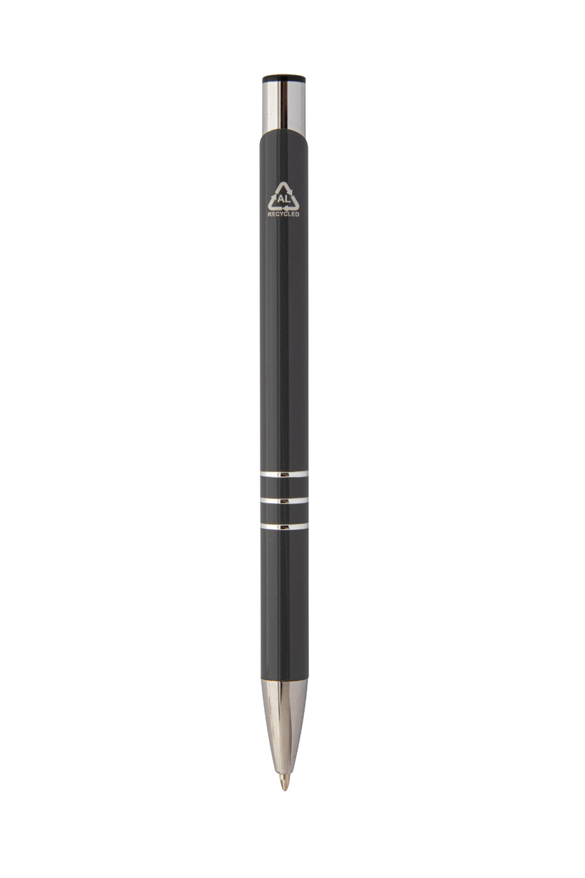 Kugelschreiber aus recyceltem Aluminium, blauschreibend.