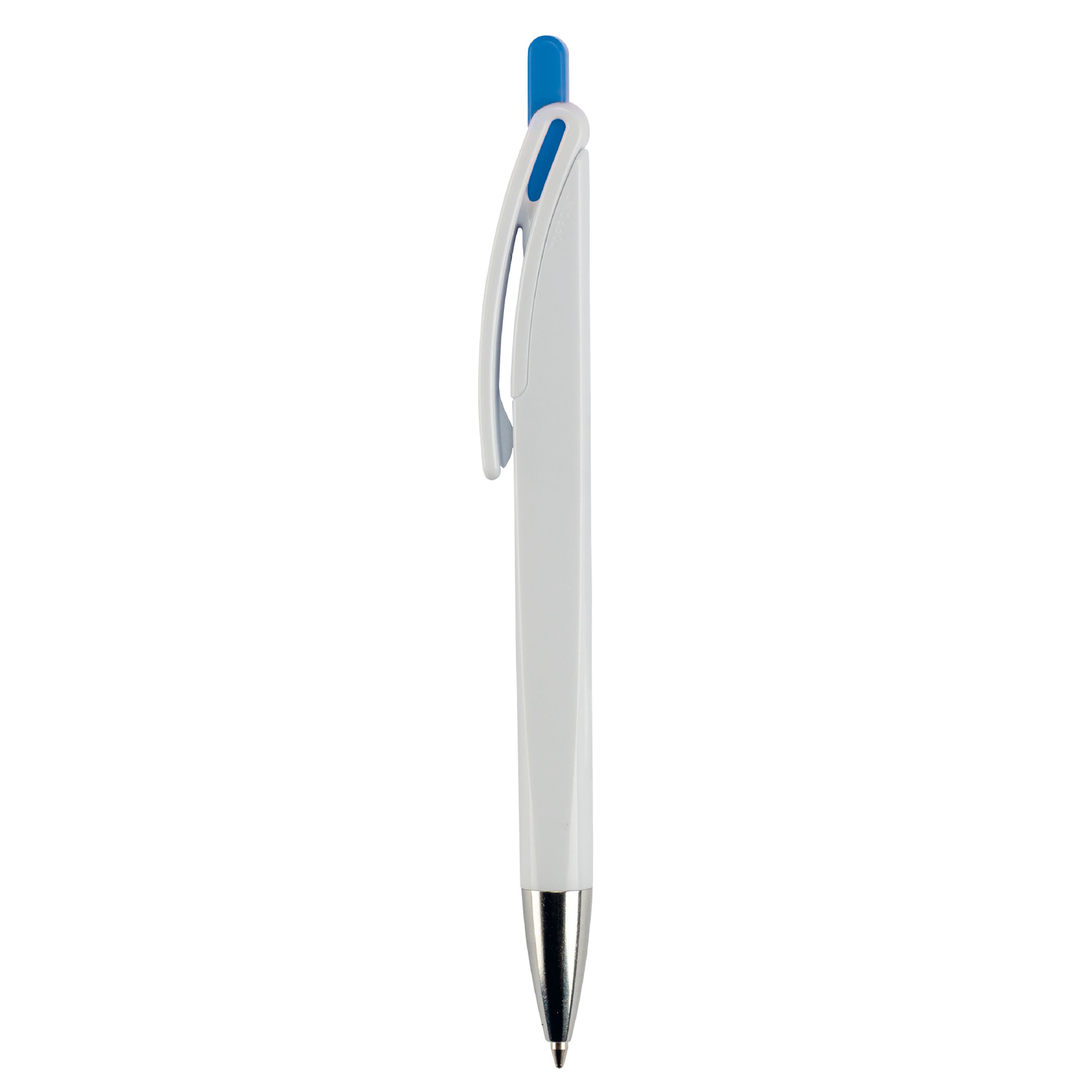 Toppoint Kugelschreiber Design. Kugelschreiber mit einem vollfarbigen Gehäuse und einem transparenten Clip, inkl. einer Metallspitze und einer Jubomine: Minenfarbe: blau.