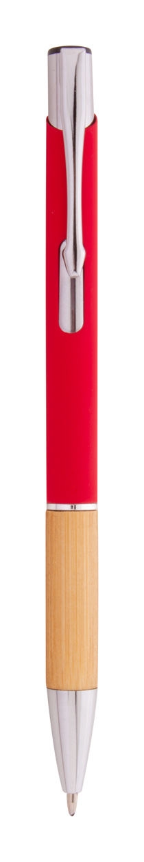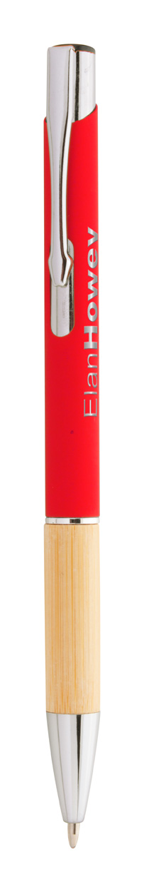 Aluminium-Kugelschreiber mit Bambus-Griffzone, gummierter Oberfläche und spezieller Beschichtung für eine Spiegelgravur, blauschreibend.