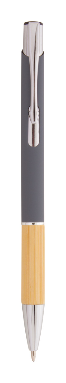 Aluminium-Kugelschreiber mit Bambus-Griffzone, gummierter Oberfläche und spezieller Beschichtung für eine Spiegelgravur, blauschreibend.