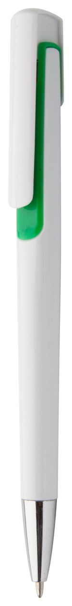 Kunststoff-Kugelschreiber mit verchromter Spitze und farbigem Element, blauschreibend.