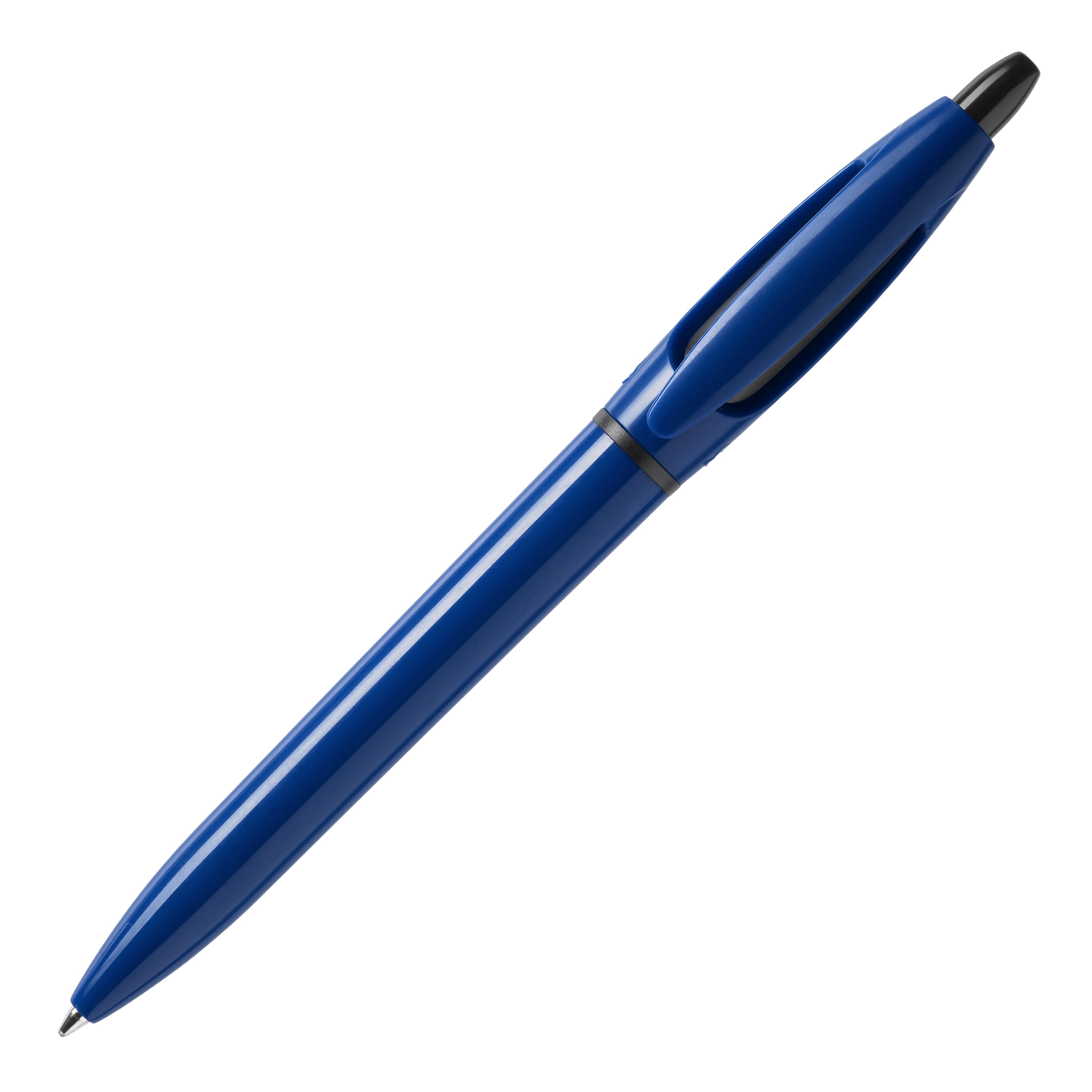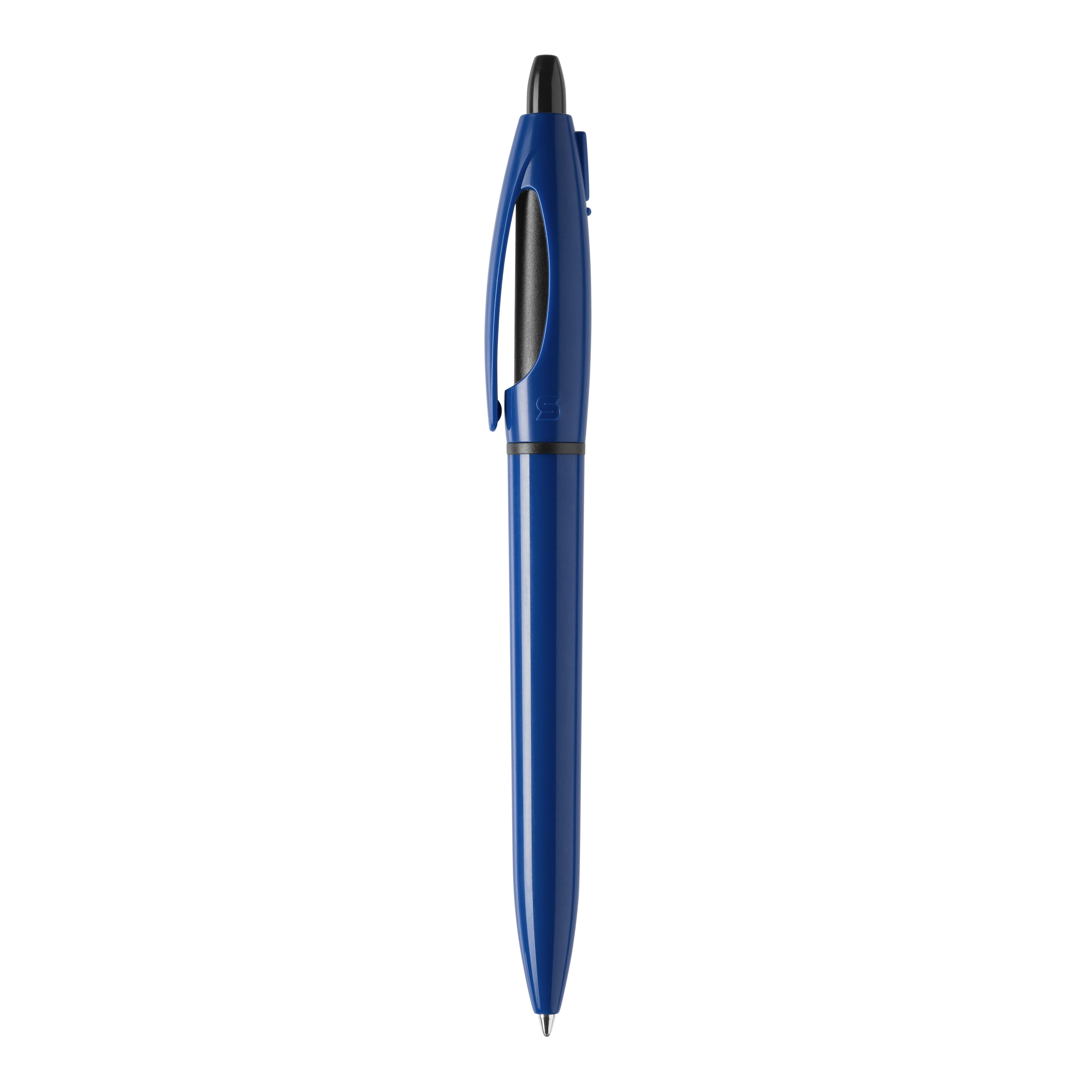 Der Hardcolour Kugelschreiber S! Extra besitzt einen farbigen Schaft, Drücker und Clip sowie einen schwarzen Ring und eine schwarze Spitze. Ausgestattet mit einer blau schreibenden X20-Refill-Mine. Der Schaft wird mit einem Logodruck veredelt. Der Kugelschreiber besteht aus ABS und wird in Europa hergestellt. Ab einer Abnahmemenge von 5.000 Stück sind eigene Farbkombinationen möglich.