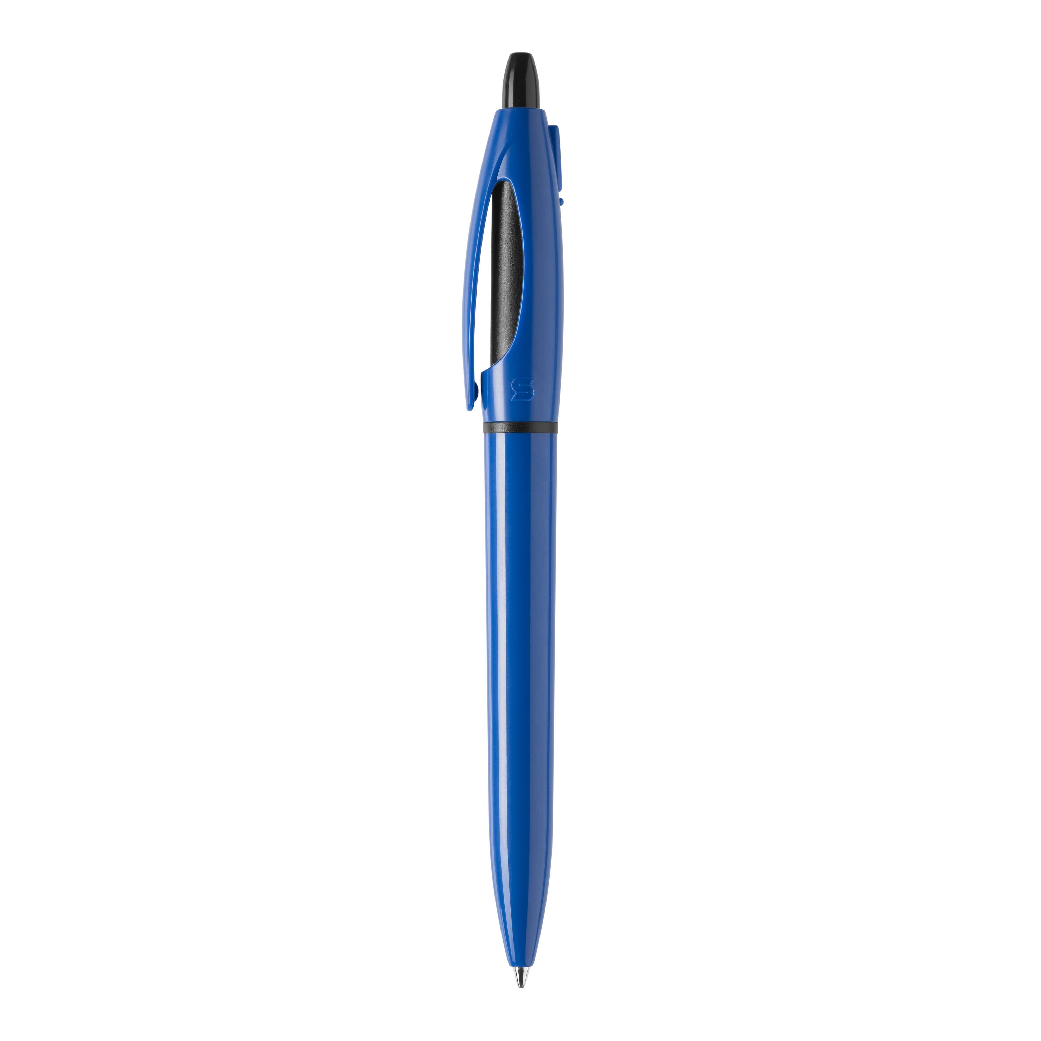 Der Hardcolour Kugelschreiber S! Extra besitzt einen farbigen Schaft, Drücker und Clip sowie einen schwarzen Ring und eine schwarze Spitze. Ausgestattet mit einer blau schreibenden X20-Refill-Mine. Der Schaft wird mit einem Logodruck veredelt. Der Kugelschreiber besteht aus ABS und wird in Europa hergestellt. Ab einer Abnahmemenge von 5.000 Stück sind eigene Farbkombinationen möglich.