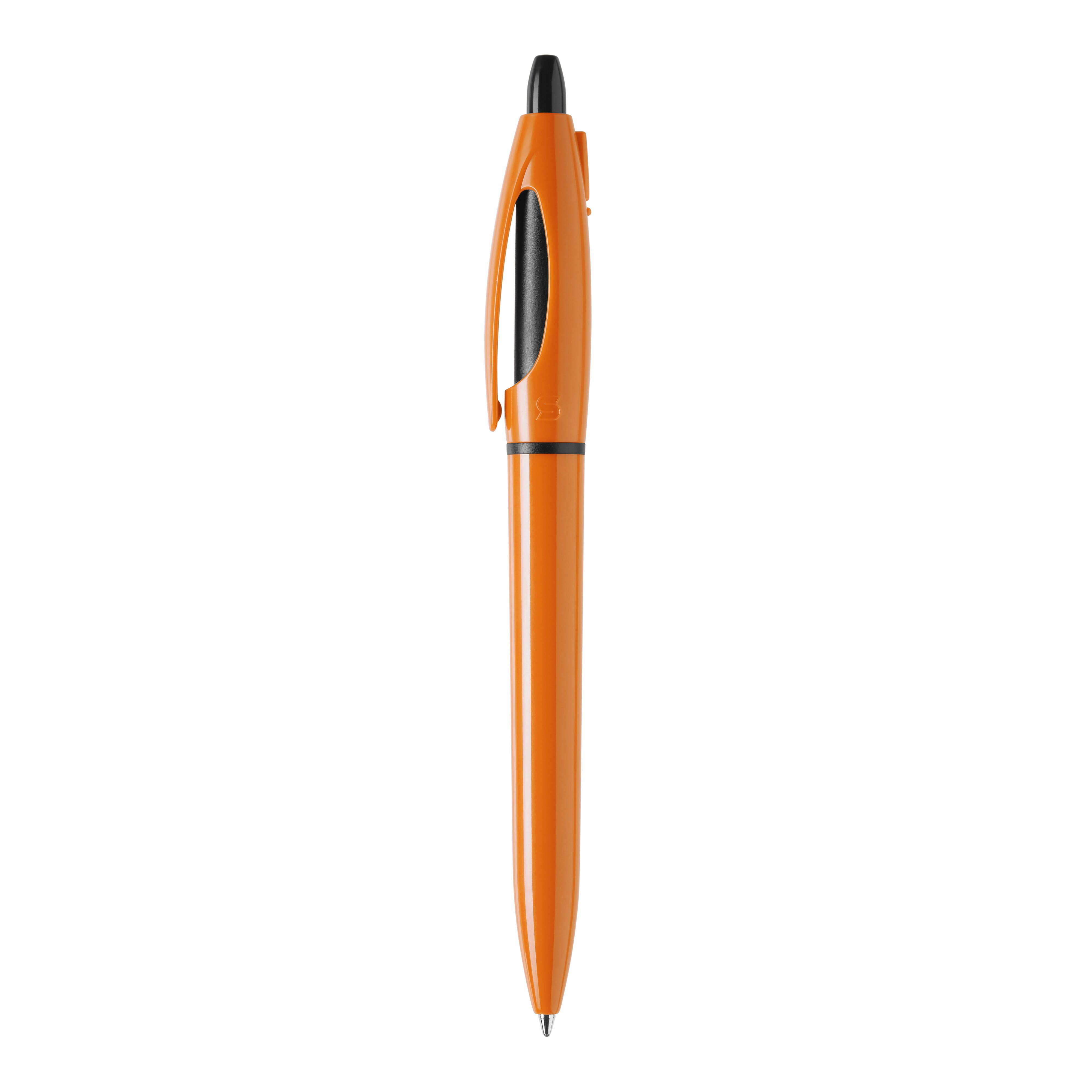 Der Hardcolour Kugelschreiber S! Extra besitzt einen farbigen Schaft, Drücker und Clip sowie einen schwarzen Ring und eine schwarze Spitze. Ausgestattet mit einer blau schreibenden X20-Refill-Mine. Der Schaft wird mit einem Logodruck veredelt. Der Kugelschreiber besteht aus ABS und wird in Europa hergestellt. Ab einer Abnahmemenge von 5.000 Stück sind eigene Farbkombinationen möglich.
