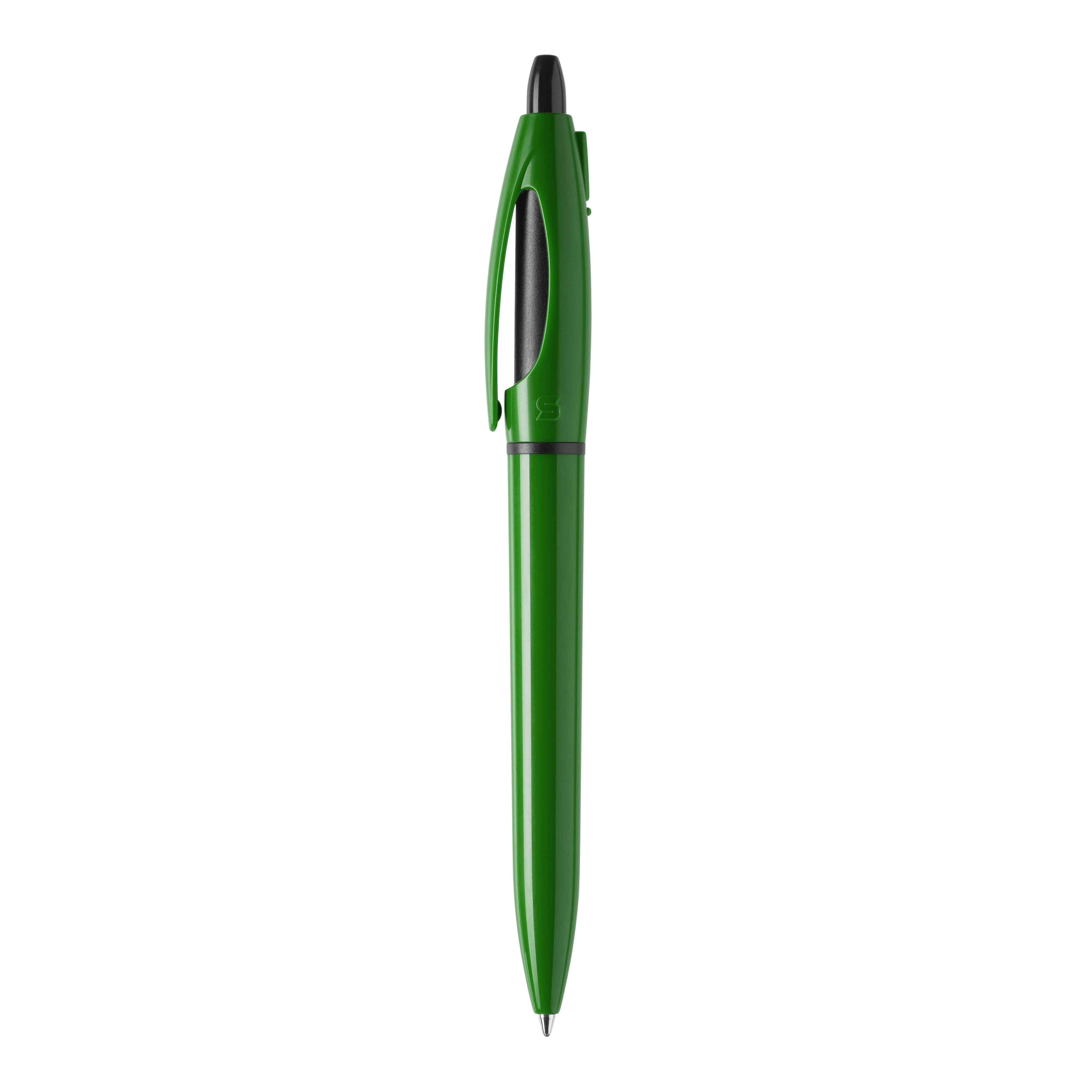Der Hardcolour Kugelschreiber S! Extra besitzt einen farbigen Schaft, Drücker und Clip sowie einen schwarzen Ring und eine schwarze Spitze. Ausgestattet mit einer blau schreibenden X20-Refill-Mine. Der Schaft wird mit einem Logodruck veredelt. Der Kugelschreiber besteht aus ABS und wird in Europa hergestellt. Ab einer Abnahmemenge von 5.000 Stück sind eigene Farbkombinationen möglich.