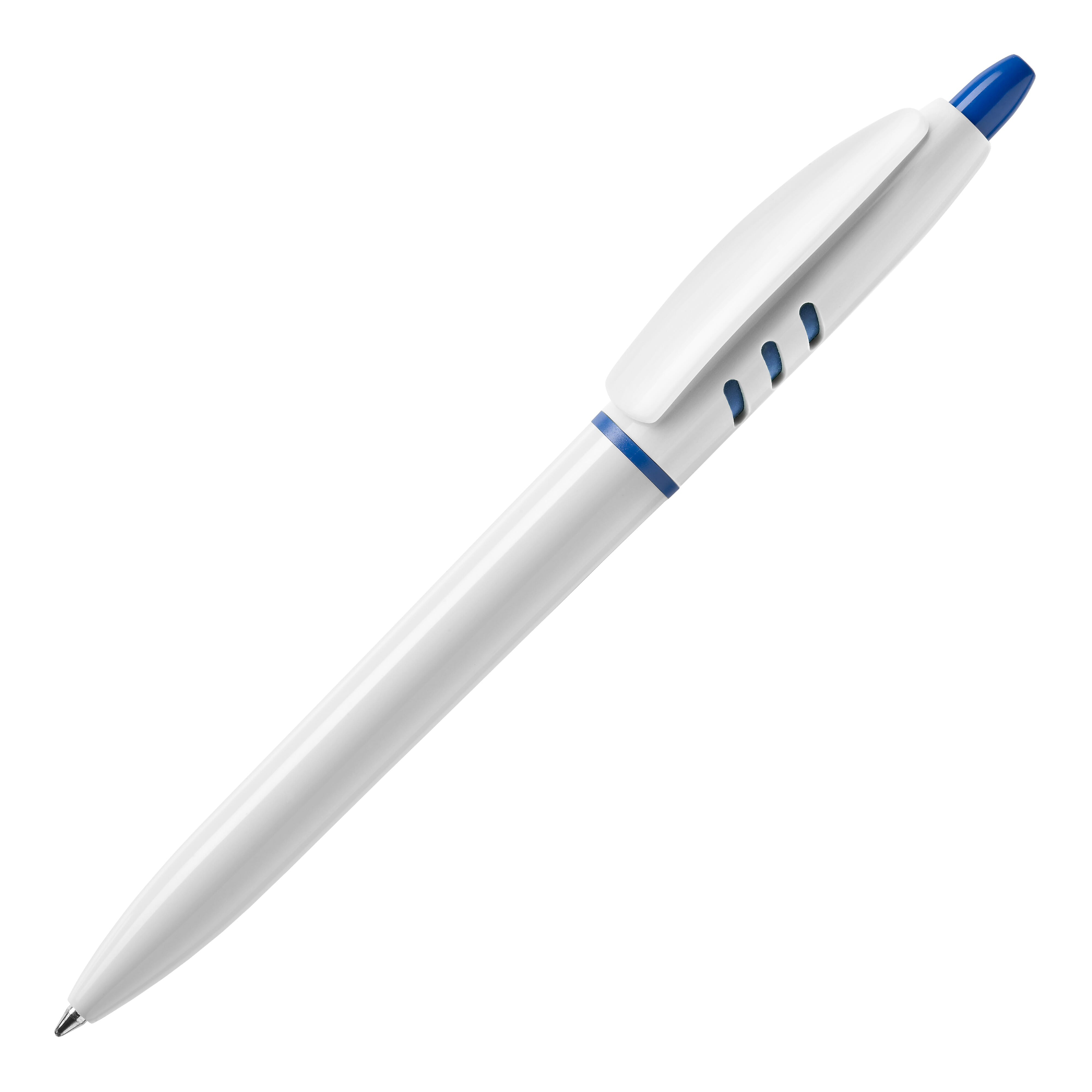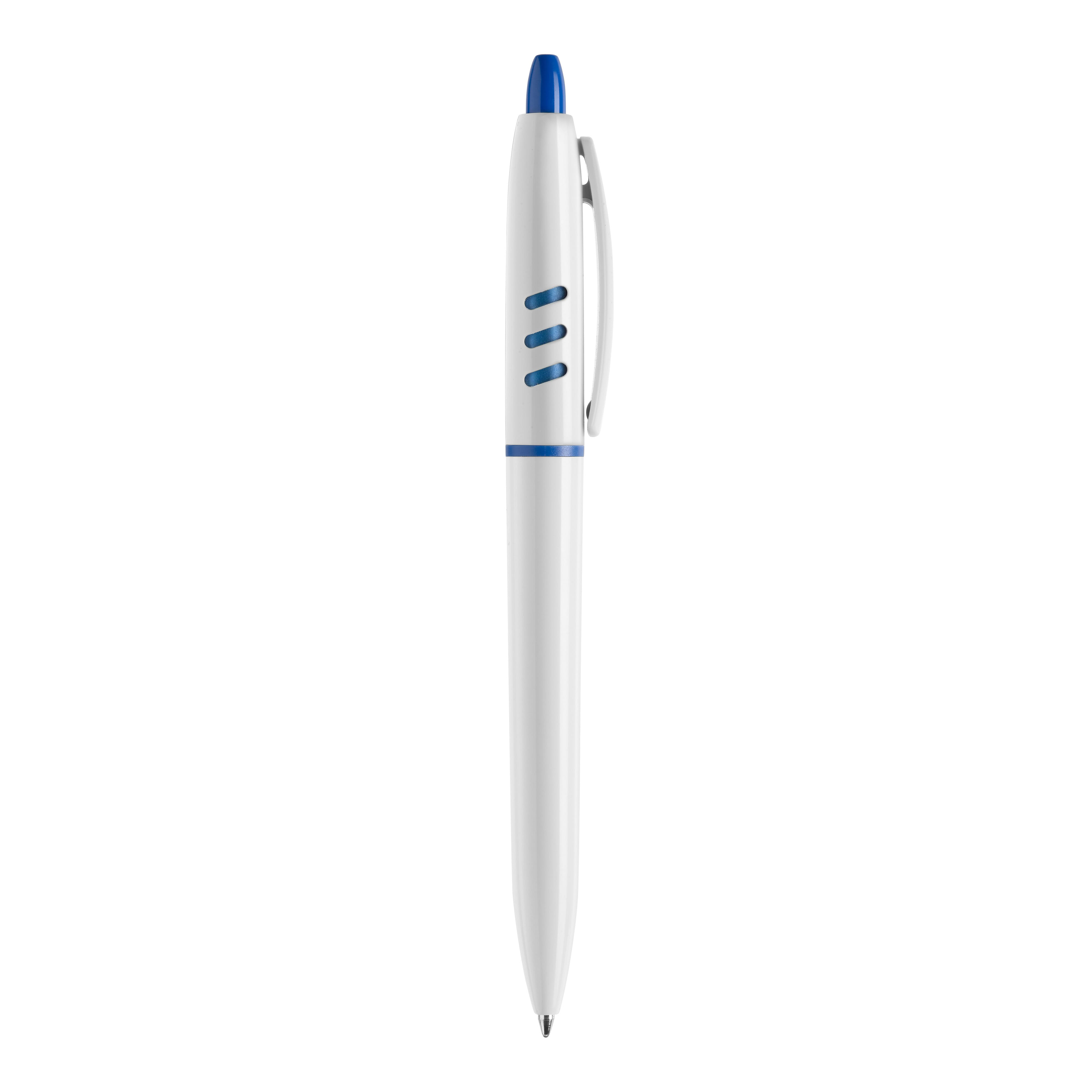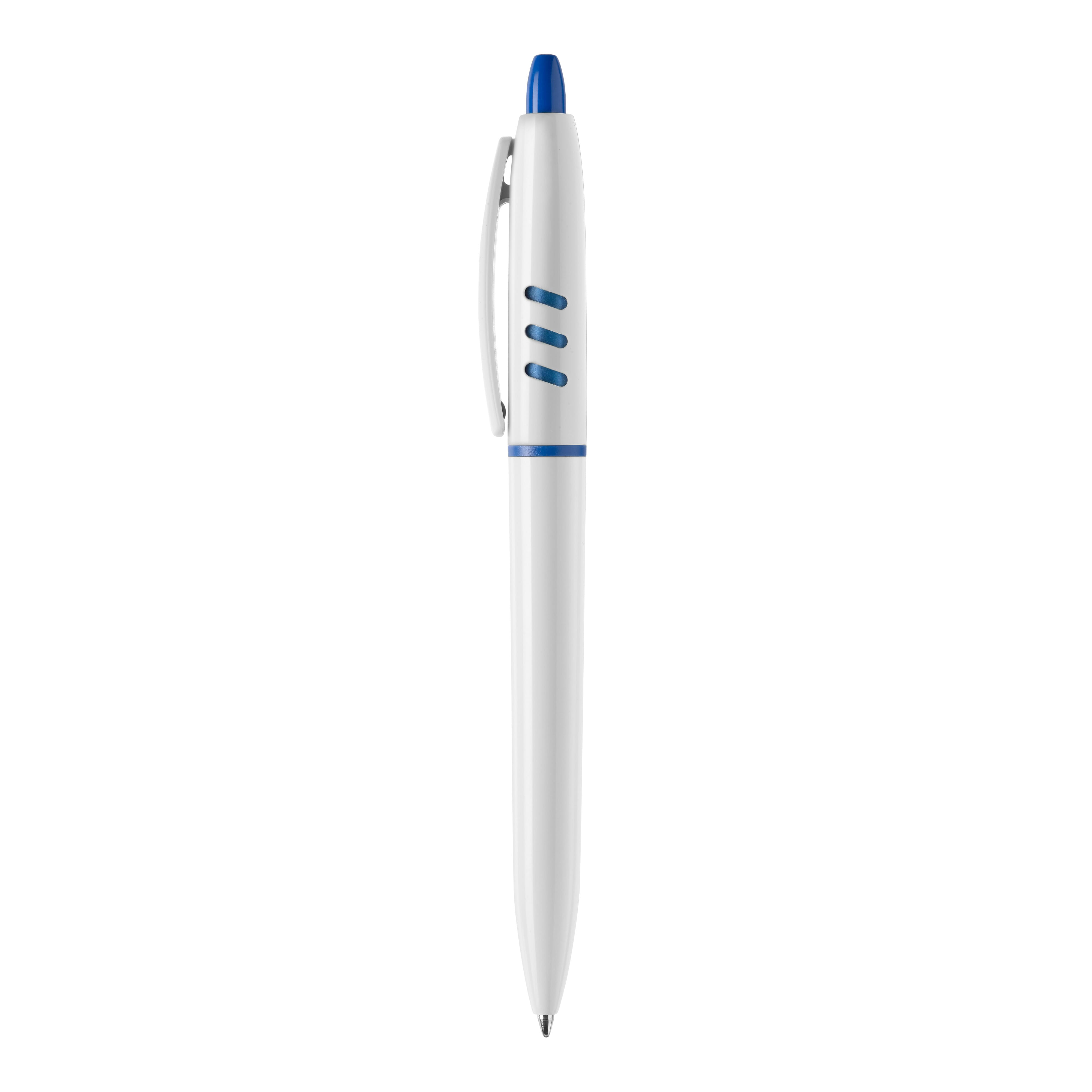 Der Hardcolour Kugelschreiber S30 besitzt ein weißes Gehäuse mit farbigen Details. Druckkugelschreiber ausgestattet mit einer blau schreibenden X20-Refill-Mine. Der Stift besteht aus ABS und wird in Europa hergestellt. Ab einer Abnahmemenge von 5.000 Stück sind eigene Farbkombinationen möglich.