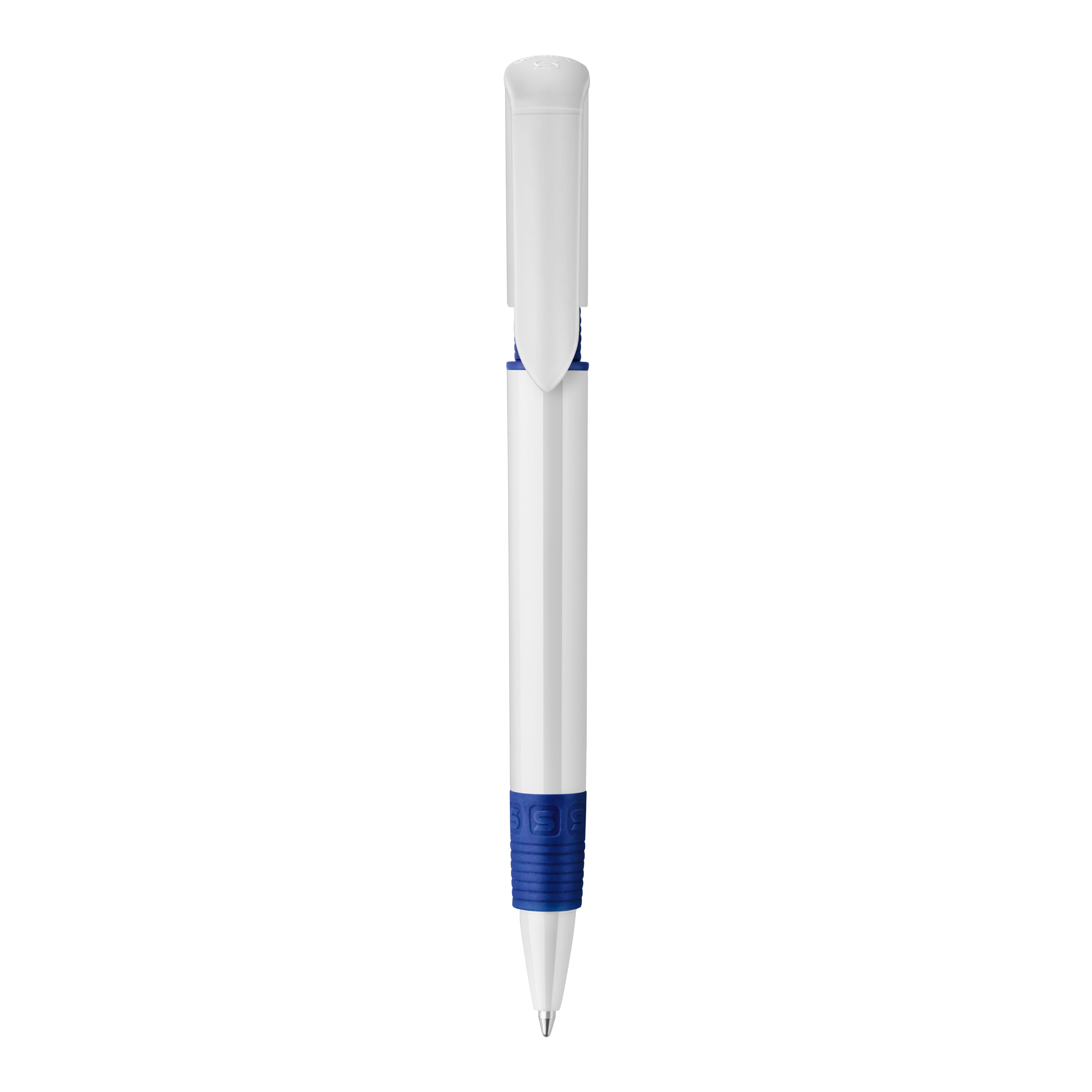 Der S40-Grip Kugelschreiber ist ein beliebtes Modell, da der farbige Teil unter dem bedruckbaren Clip dem Stift Stil und Charakter verleiht und der Griff am Stift die selbe Farbe wie der Clip hat. Der weiße Schaft wird mit einem Logodruck veredelt. Druckkugelschreiber ausgestattet mit einer blau schreibenden Toppoint jumbo-Refill-Mine. Der Hardcolour-Kugelschreiber besteht aus ABS und wird in Europa hergestellt. Ab einer Abnahmemenge von 5.000 Stück sind eigene Farbkombinationen möglich.