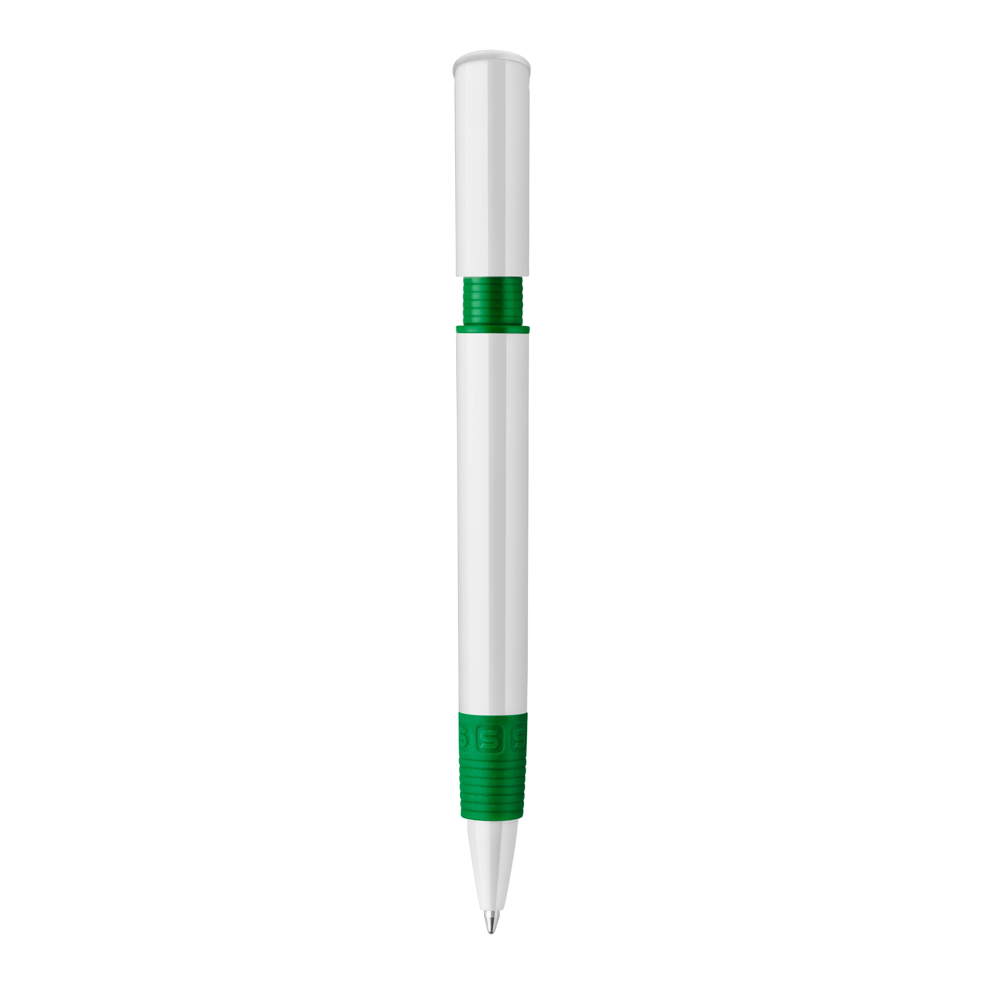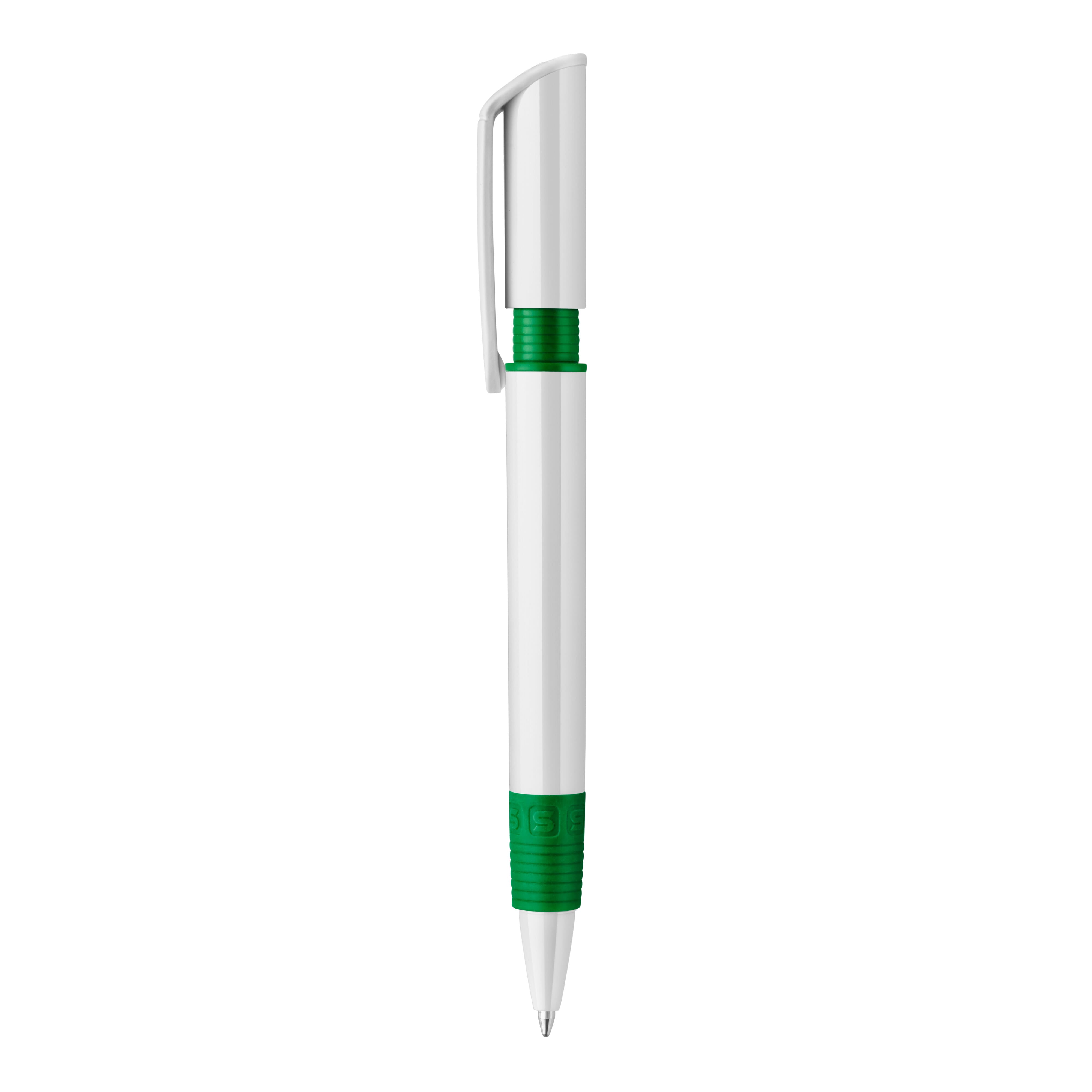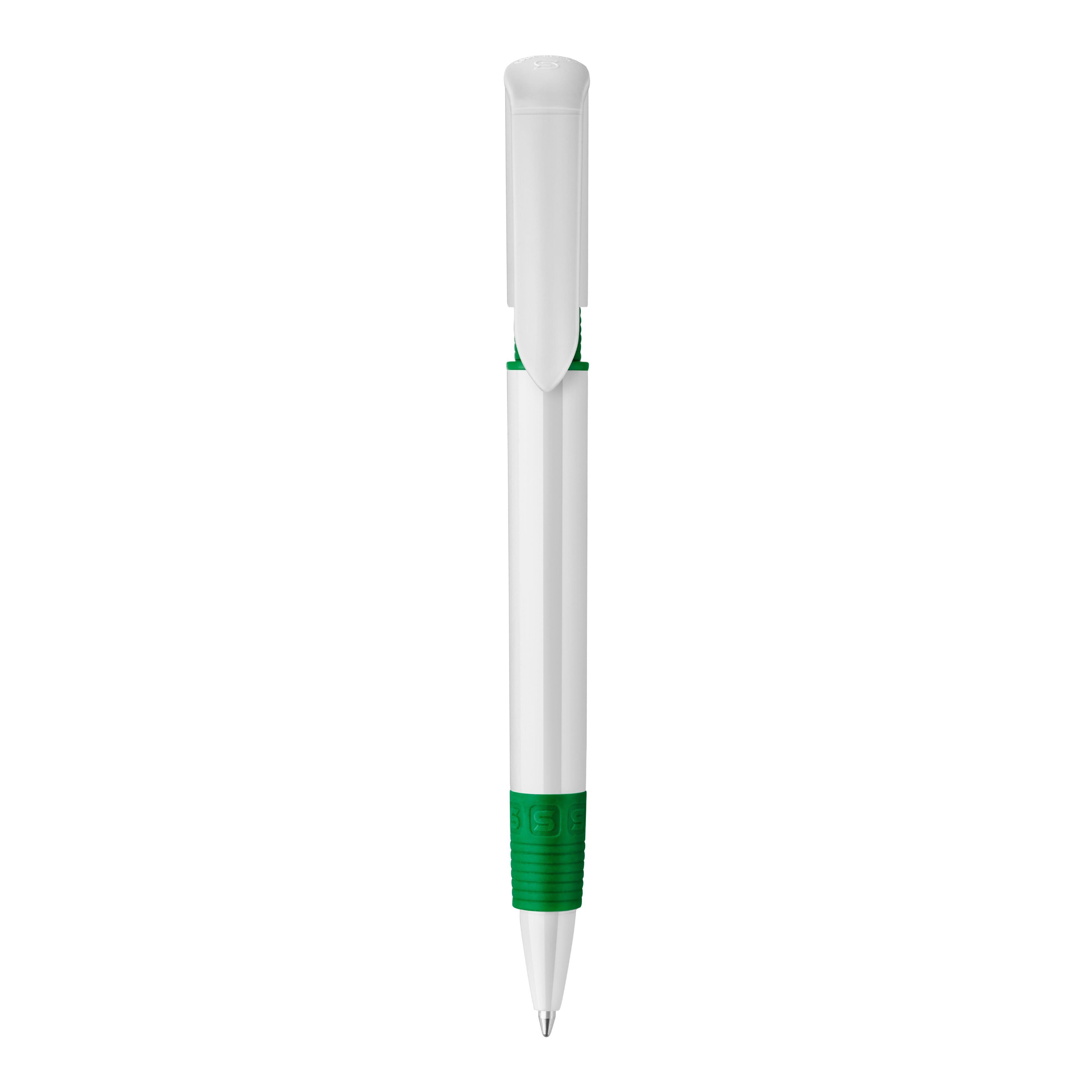 Der S40-Grip Kugelschreiber ist ein beliebtes Modell, da der farbige Teil unter dem bedruckbaren Clip dem Stift Stil und Charakter verleiht und der Griff am Stift die selbe Farbe wie der Clip hat. Der weiße Schaft wird mit einem Logodruck veredelt. Druckkugelschreiber ausgestattet mit einer blau schreibenden Toppoint jumbo-Refill-Mine. Der Hardcolour-Kugelschreiber besteht aus ABS und wird in Europa hergestellt. Ab einer Abnahmemenge von 5.000 Stück sind eigene Farbkombinationen möglich.