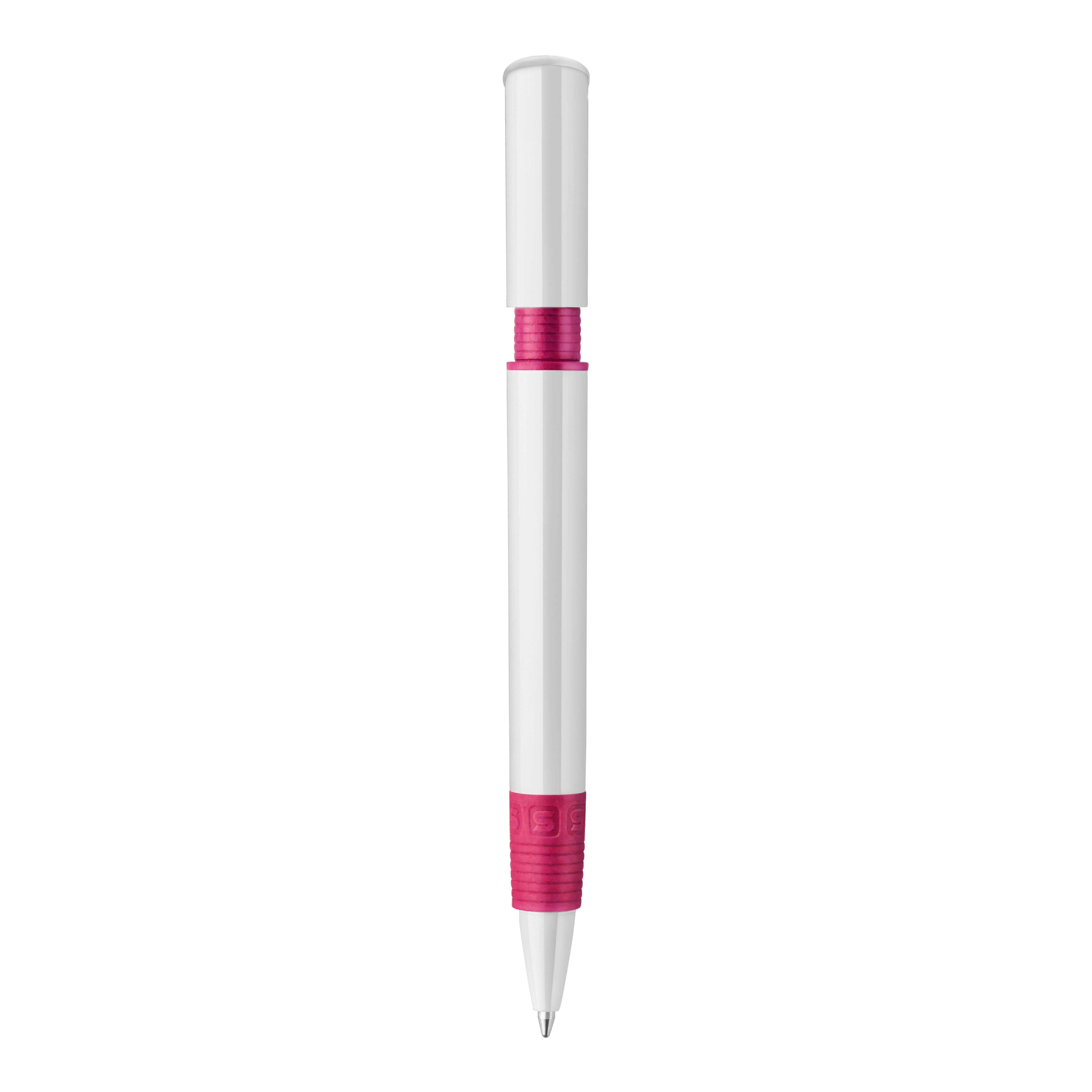 Der S40-Grip Kugelschreiber ist ein beliebtes Modell, da der farbige Teil unter dem bedruckbaren Clip dem Stift Stil und Charakter verleiht und der Griff am Stift die selbe Farbe wie der Clip hat. Der weiße Schaft wird mit einem Logodruck veredelt. Druckkugelschreiber ausgestattet mit einer blau schreibenden Toppoint jumbo-Refill-Mine. Der Hardcolour-Kugelschreiber besteht aus ABS und wird in Europa hergestellt. Ab einer Abnahmemenge von 5.000 Stück sind eigene Farbkombinationen möglich.