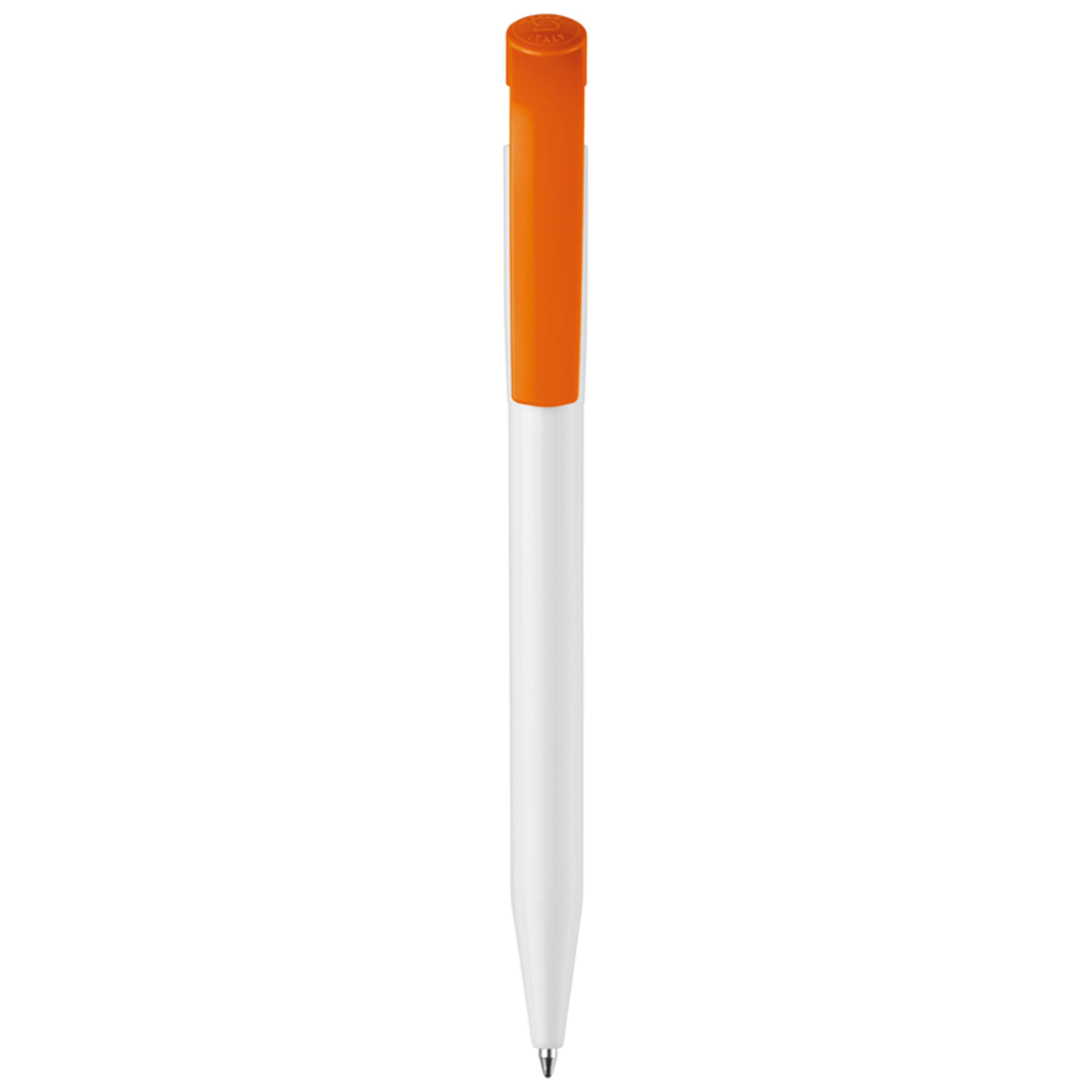 Moderner Hardcolour-Kugelschreiber mit gebogenem Clip. Ein beliebter Werbeartikel wegen seiner großen Druckfläche. Druckkugelschreiber ausgestattet mit einer blau schreibenden X20-Refill-Mine. Druckkugelschreiber aus ABS, hergestellt in Europa. Ab einer Abnahmemenge von 5.000 Stück sind eigene Farbkombinationen möglich.
