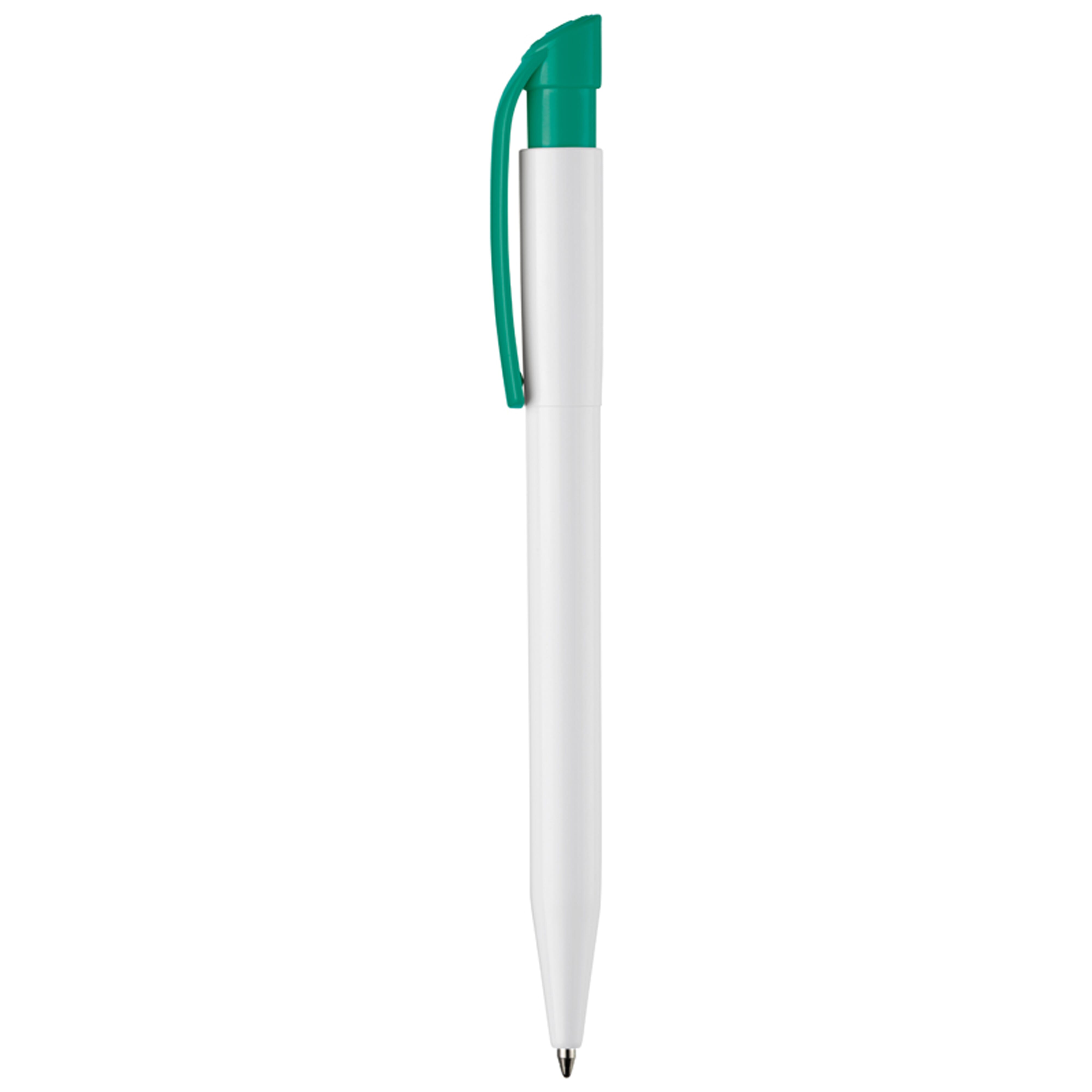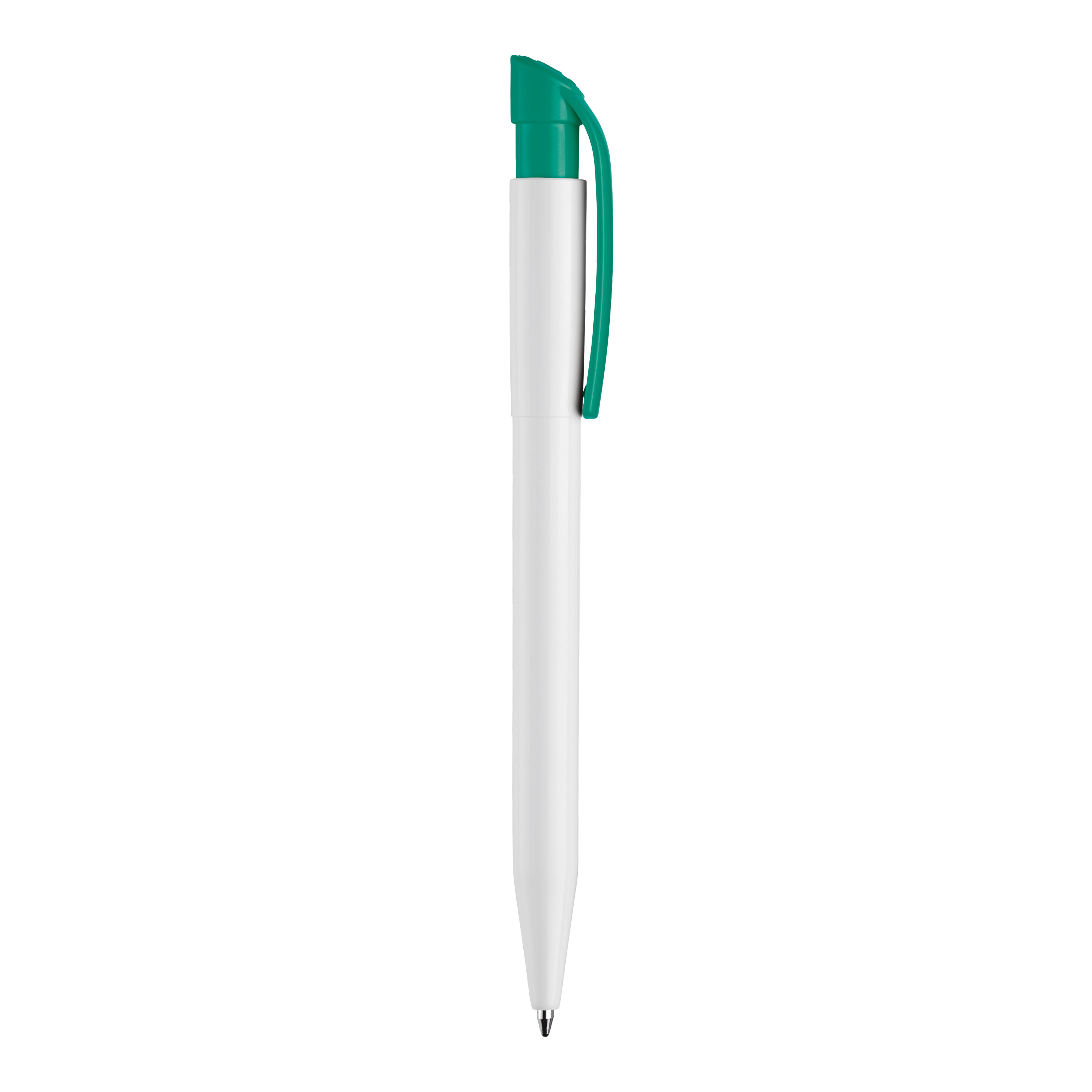 Moderner Hardcolour-Kugelschreiber mit gebogenem Clip. Ein beliebter Werbeartikel wegen seiner großen Druckfläche. Druckkugelschreiber ausgestattet mit einer blau schreibenden X20-Refill-Mine. Druckkugelschreiber aus ABS, hergestellt in Europa. Ab einer Abnahmemenge von 5.000 Stück sind eigene Farbkombinationen möglich.
