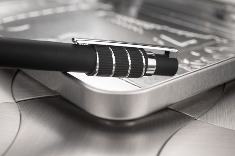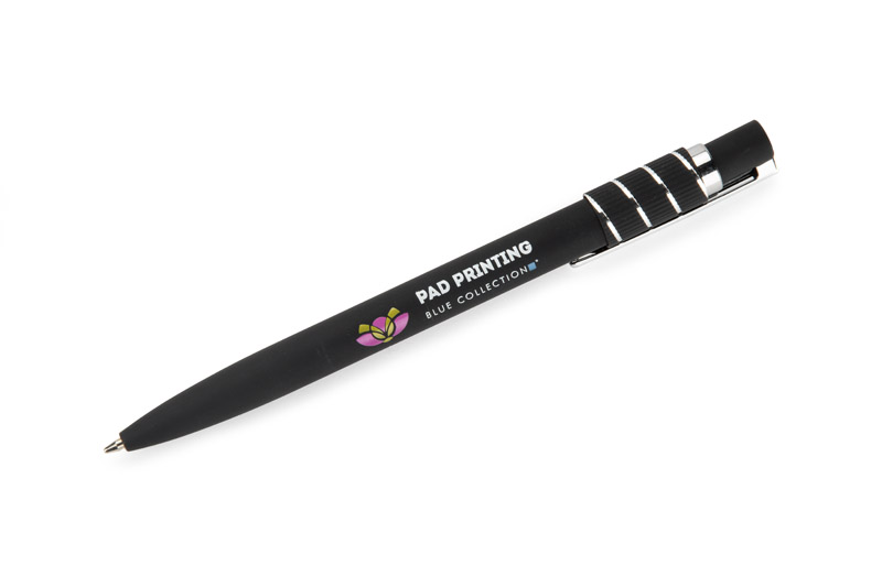 SPINO zeichnet sich durch die Kombination eines klassischen Kugelschreibers mit dem beliebten Anti-Stress-Spinner aus, der sich direkt unter dem Clip befindet. Das mit einem Soft-Touch-Finish überzogene Gehäuse sorgt für Schreibkomfort. Der Spinner mit dekorativen Silberelementen ist nicht nur ein Blickfang, sondern hilft auch, Verspannungen bei der Arbeit oder in Meetings abzubauen. Er ist ein funktionelles Schreibgerät mit einem lustigen Element, das sich hervorragend als origineller Werbeträger eignet.