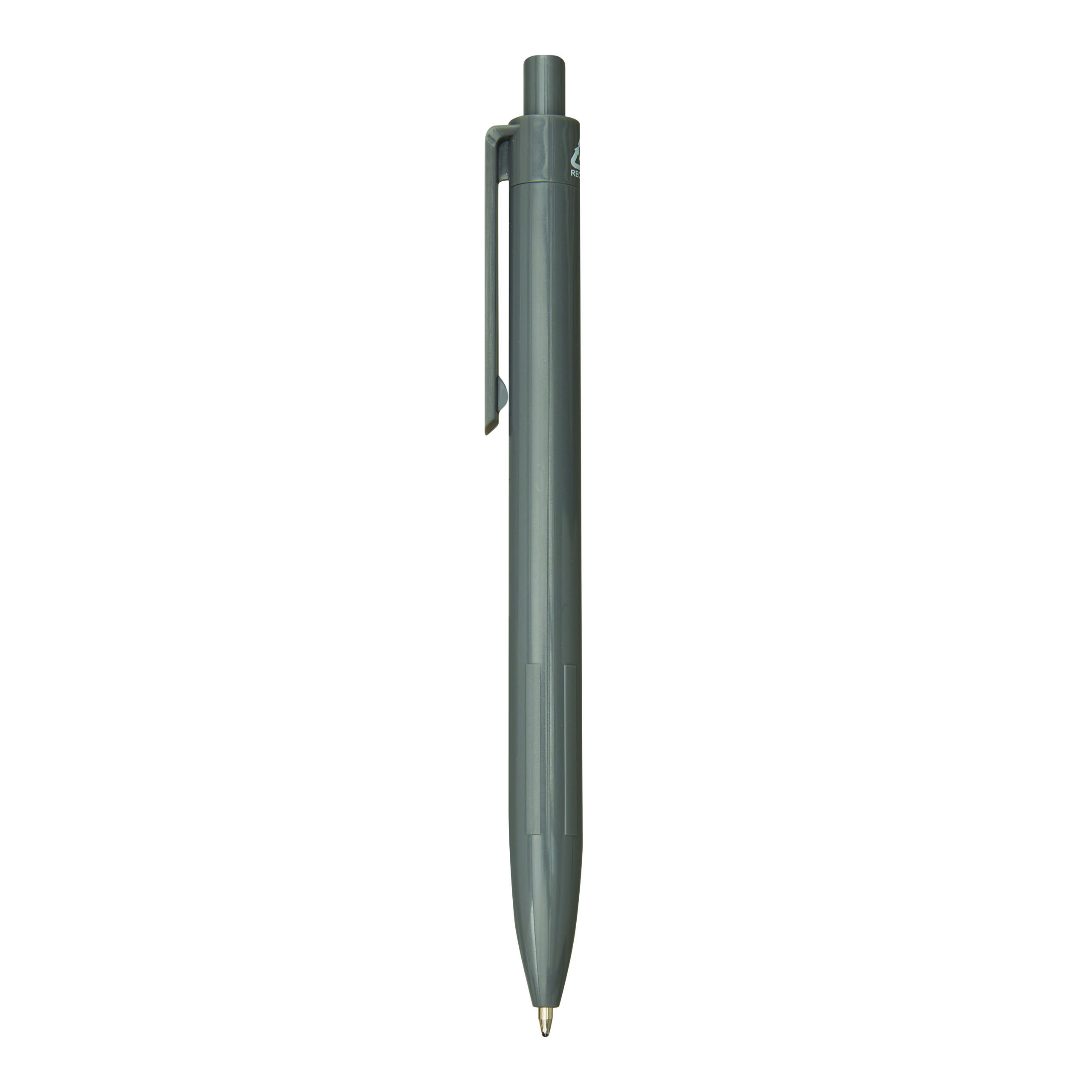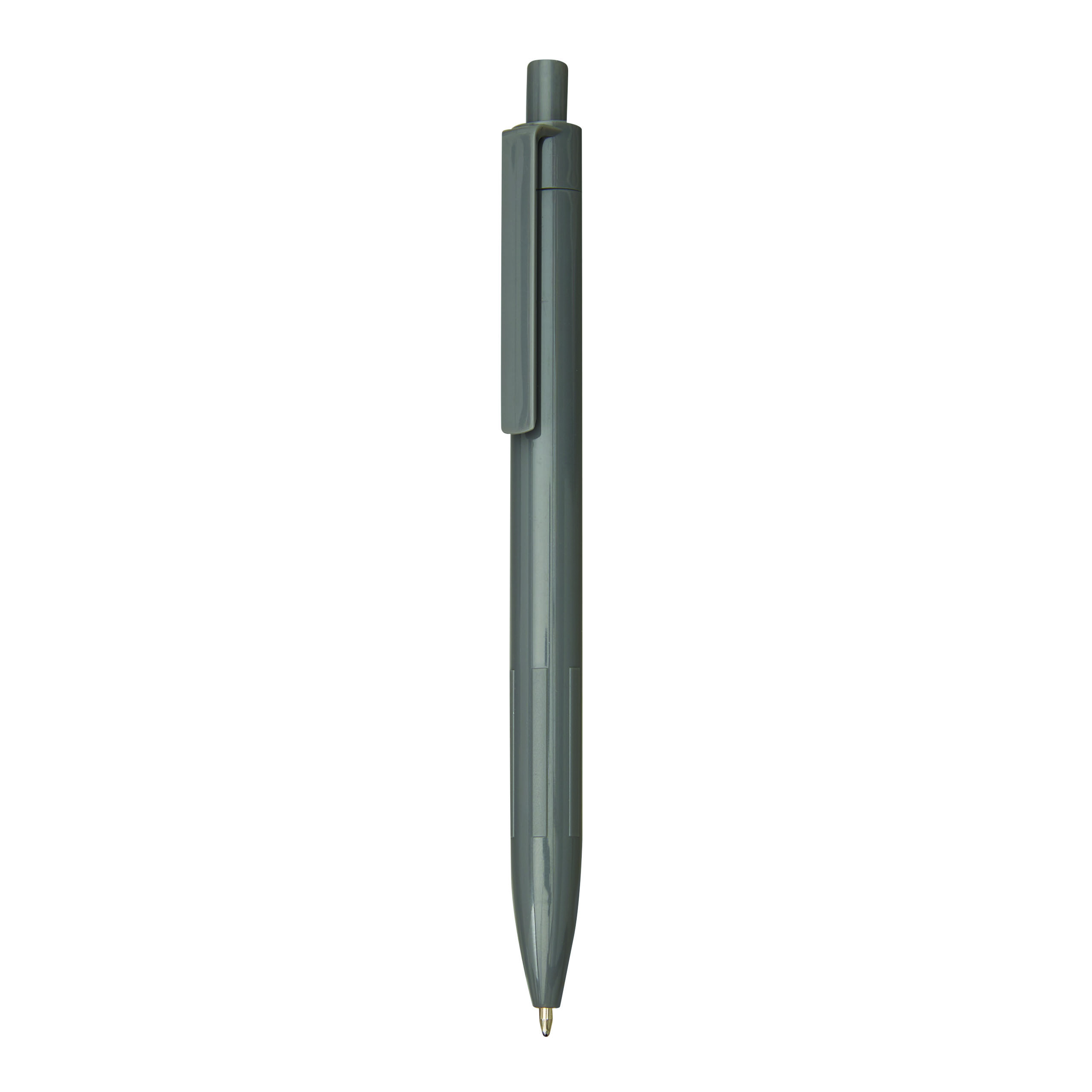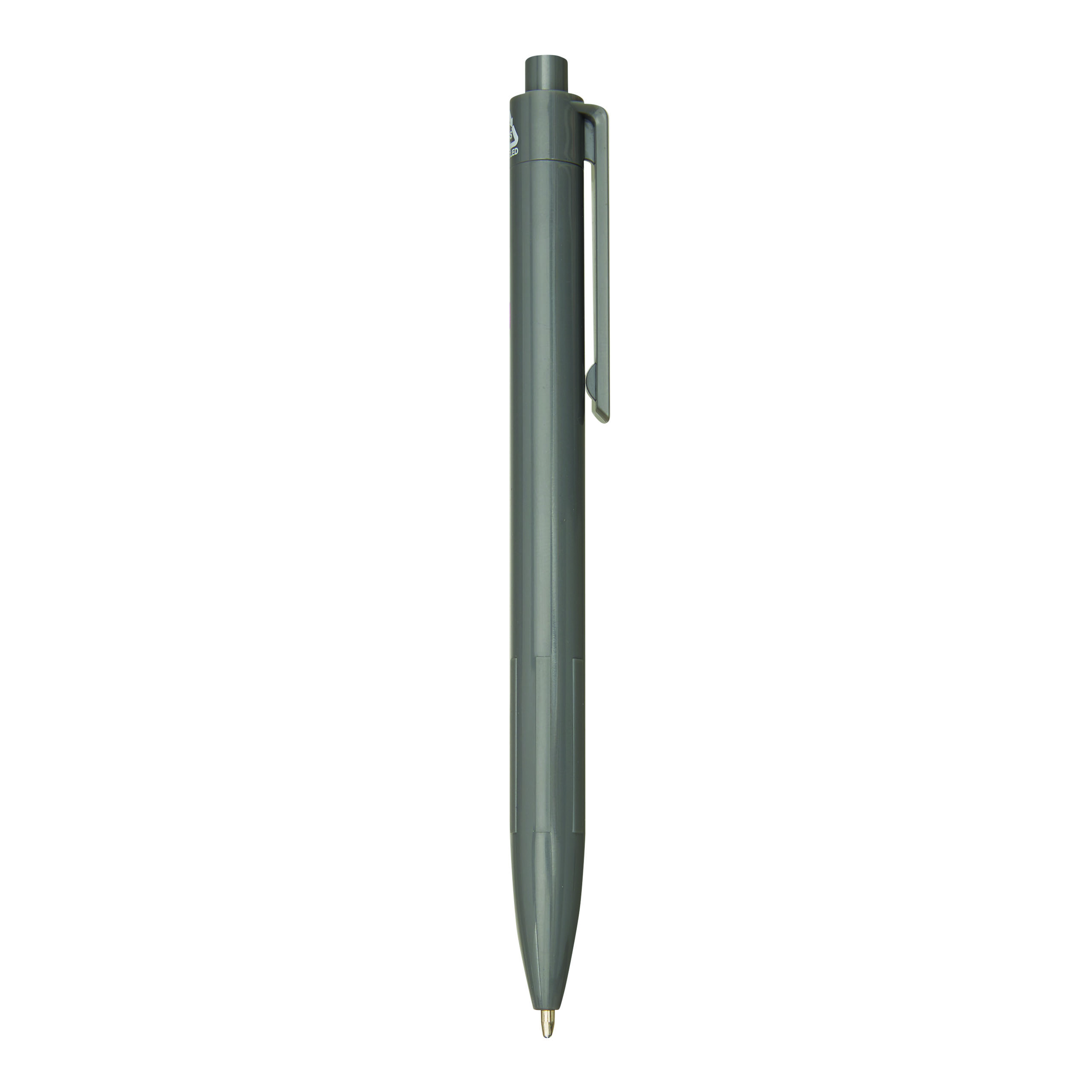 Kugelschreiber STACCATO: mit Schaft aus recyceltem Kunststoff, geriffelte Griffzone, Druckmechanismus, blauschreibend