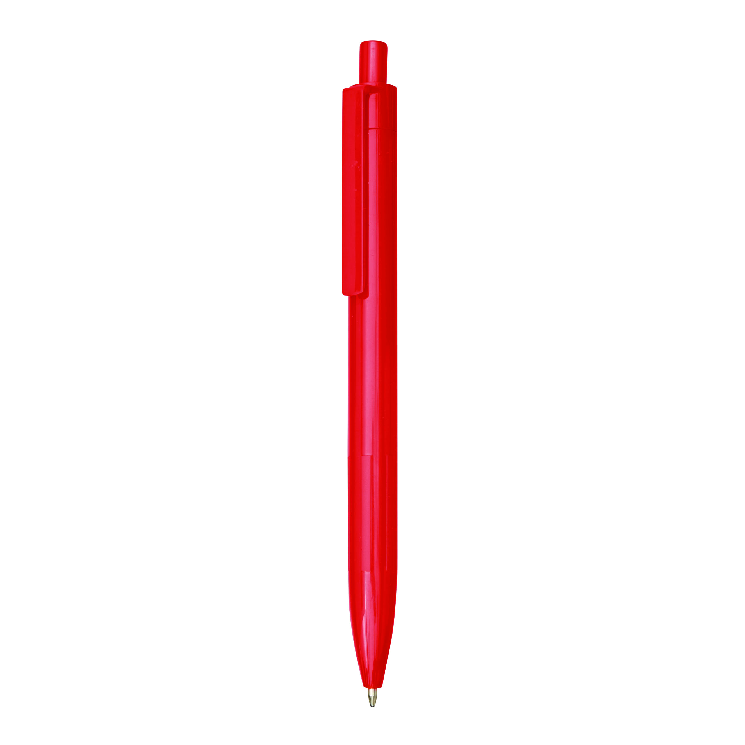 Kugelschreiber STACCATO: mit Schaft aus recyceltem Kunststoff, geriffelte Griffzone, Druckmechanismus, blauschreibend
