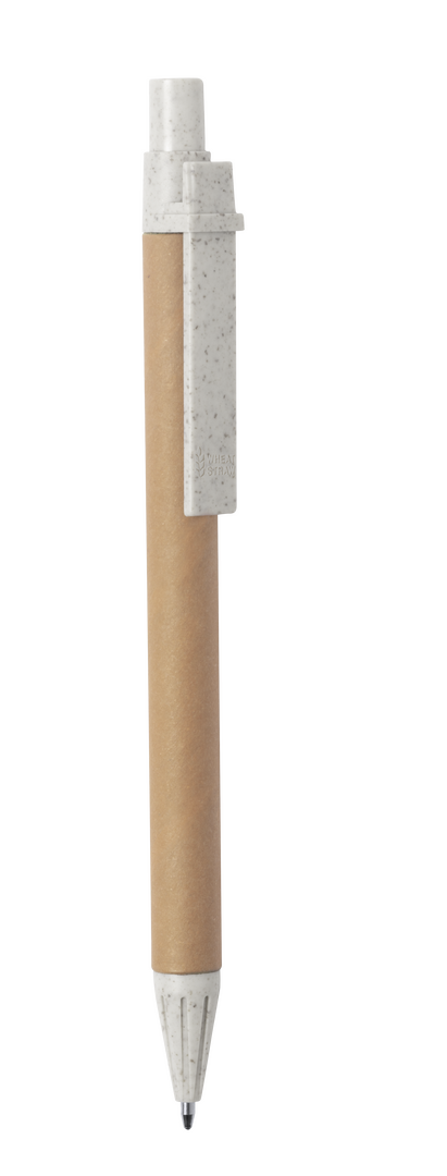 Kugelschreiber aus unserer Naturlinie mit Druckmechanismus. Körper aus recycelter Pappe, mit Zubehör aus Weizenstroh, um die Verwendung natürlicher Rohstoffe zu fördern und Schadstoffemissionen zu reduzieren. Erhältlich in einer breiten Palette von Farben, mit blauer Tintenmine.