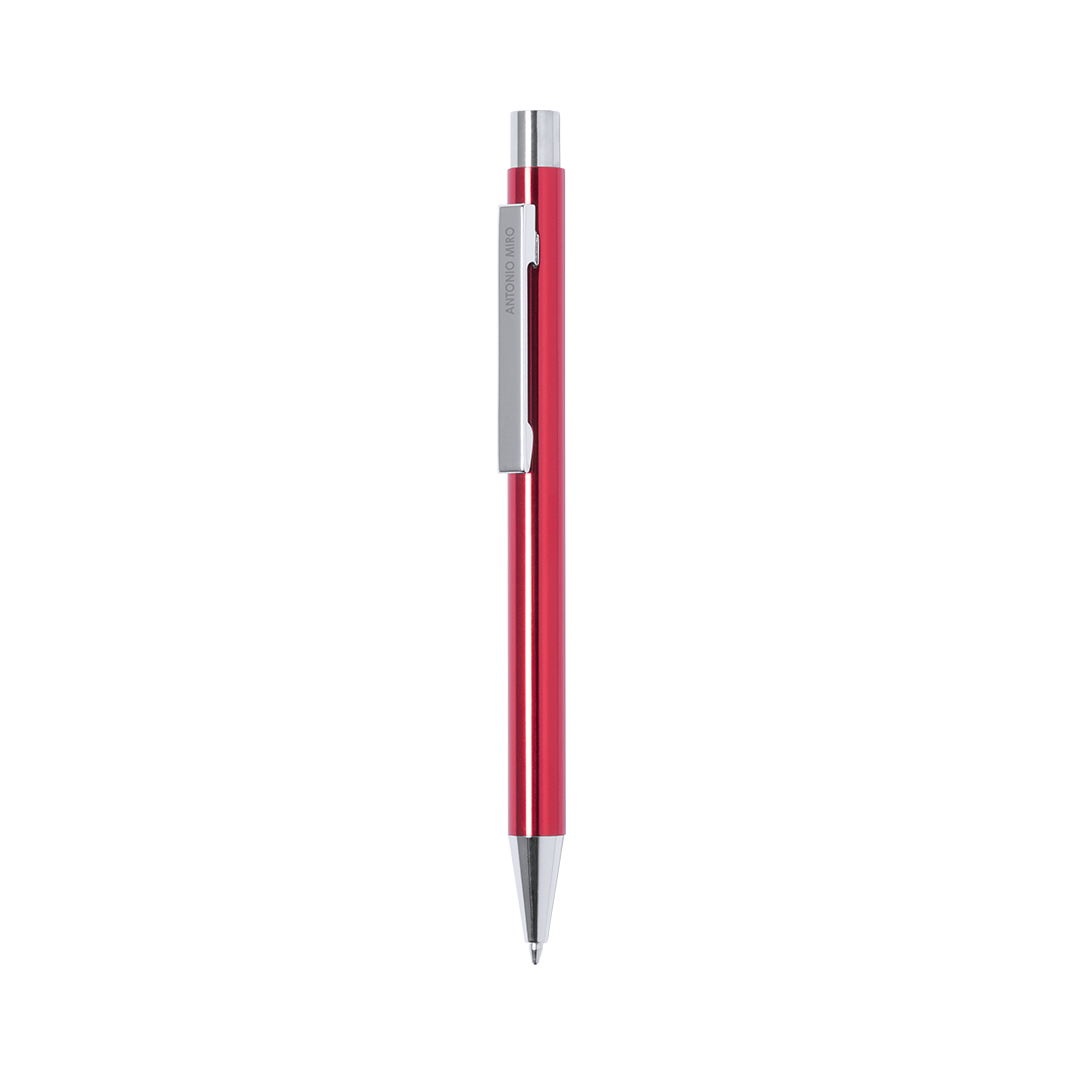 Druck-Kugelschreiber von Antonio Miró mit Aluminiumschaft in verschiedenen Farben und Silber. Präsentiert in einem Beutel mit dem Markenlogo. Blaue Tinte.