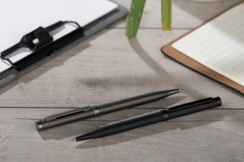 TASI ist ein leichter Metallkugelschreiber mit matter Oberfläche und schlankem Design. Die Soft-Touch-Beschichtung sorgt für ein angenehmes Schreibgefühl. Der Drehmechanismus bietet Funktionalität und Komfort. Ein ideales, stilvolles Werbegeschenk.