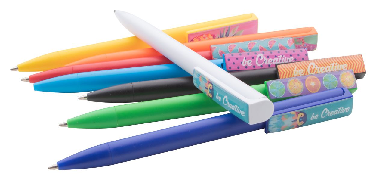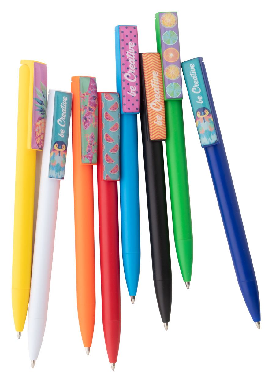 Kunststoff-Kugelschreiber mit besonderer Clip-Bewegung, blauschreibend.