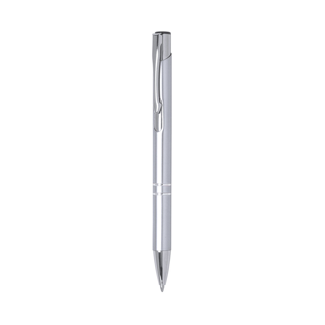 Origineller Kugelschreiber mit Druckknopfmechanismus in elegantem zweifarbigen Design. Gestanzter Aluminiumschaft mit glatter Oberfläche in verschiedenen Farben. Origineller Clip, Ringe und Spitze in Silber. Mit Jumbo-Mine und blauer Tinte.