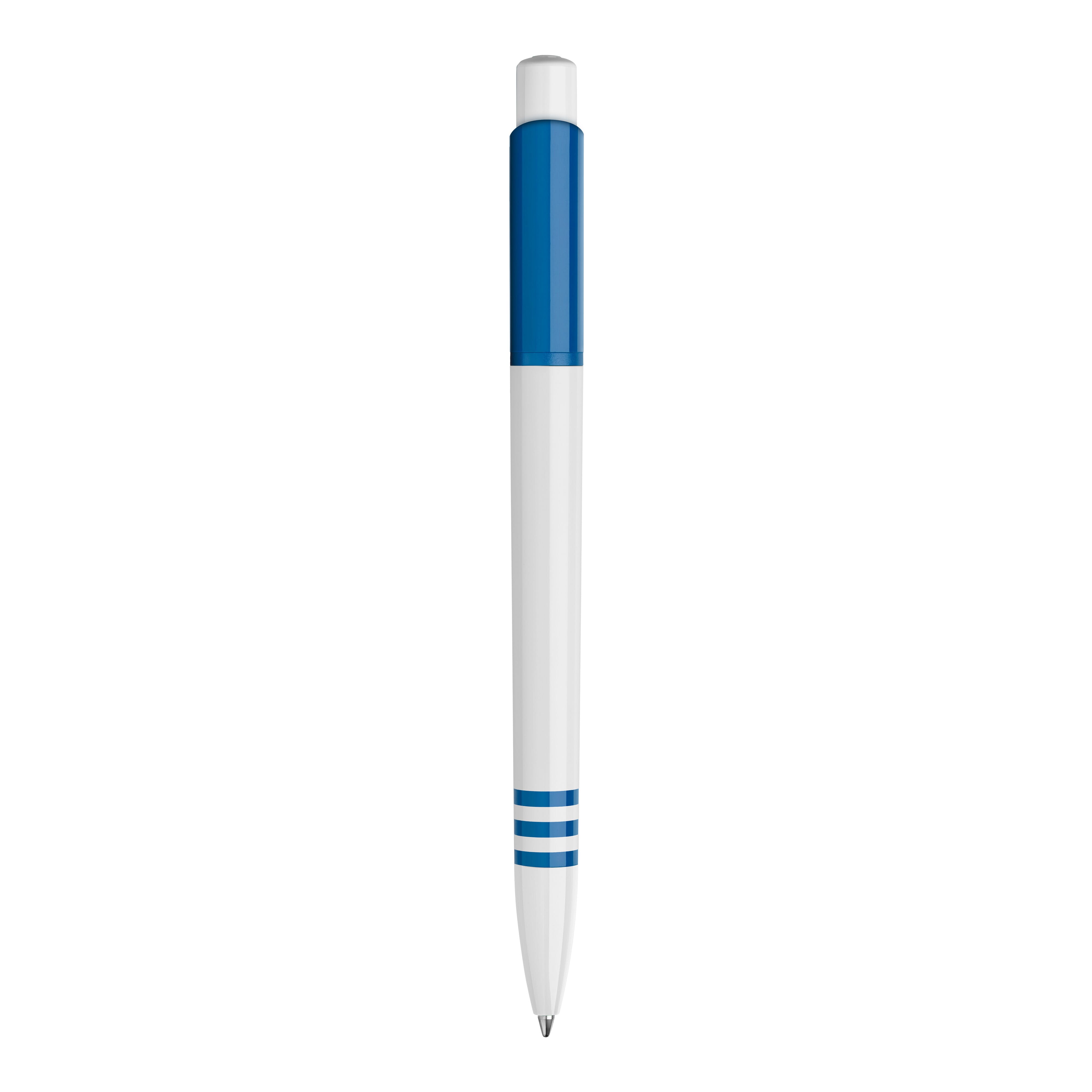 Der Hardcolour Kugelschreiber Tropic hat eine große Druckfläche auf dem Clip und dem Schaft. Eine ansprechende Kombination aus weißem Schaft und weißem Drücker sowie einem farbigen Clip. Der Schaft hat drei farbige Ringe in der gleichen Farbe wie der Clip. Druckkugelschreiber ausgestattet mit einer blau schreibenden Jumbo-Refill-Mine. Der Stift besteht aus ABS-Kunststoff und wird in Europa hergestellt. Ab einer Abnahmemenge von 5.000 Stück sind eigene Farbkombinationen möglich.