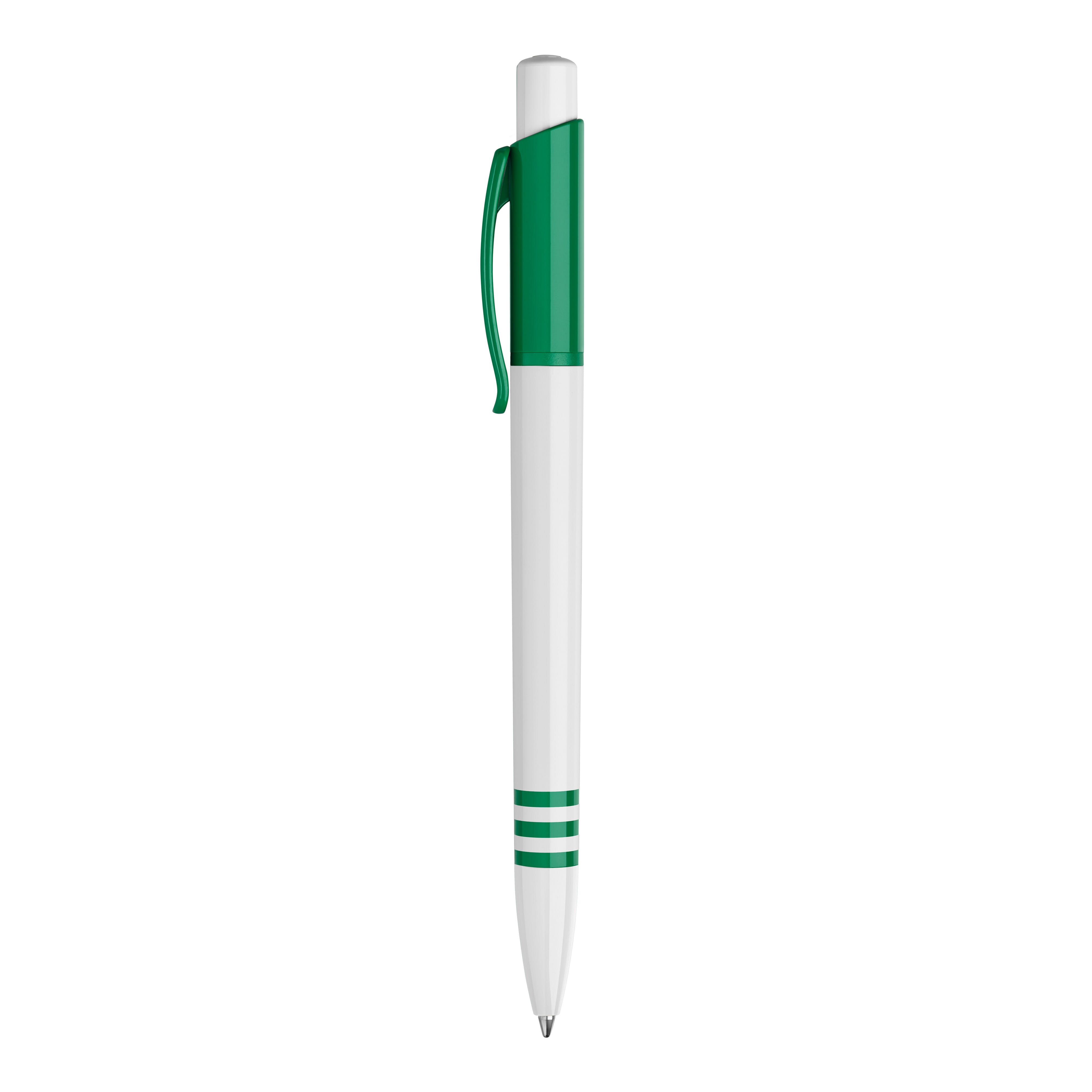 Der Hardcolour Kugelschreiber Tropic hat eine große Druckfläche auf dem Clip und dem Schaft. Eine ansprechende Kombination aus weißem Schaft und weißem Drücker sowie einem farbigen Clip. Der Schaft hat drei farbige Ringe in der gleichen Farbe wie der Clip. Druckkugelschreiber ausgestattet mit einer blau schreibenden Jumbo-Refill-Mine. Der Stift besteht aus ABS-Kunststoff und wird in Europa hergestellt. Ab einer Abnahmemenge von 5.000 Stück sind eigene Farbkombinationen möglich.