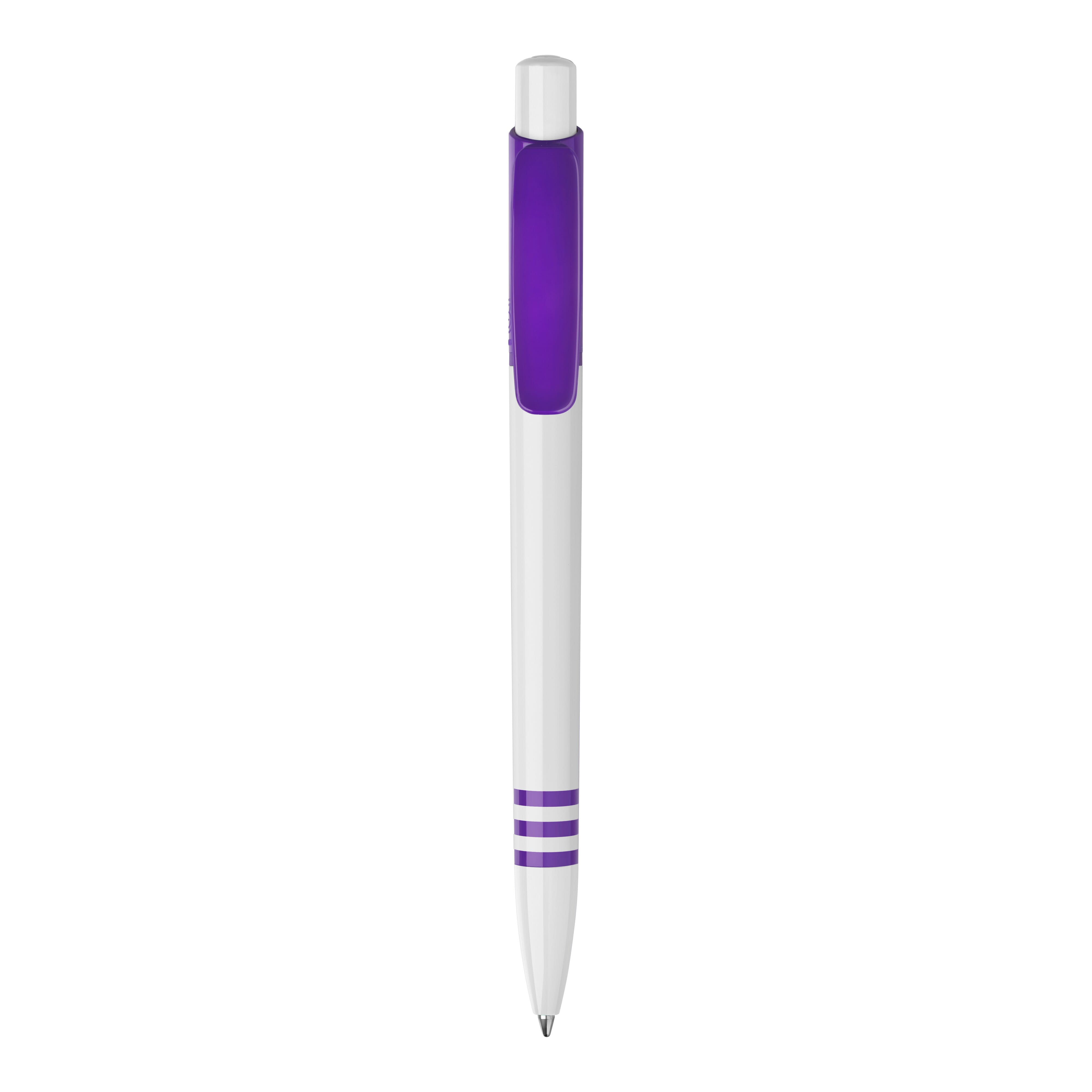Der Hardcolour Kugelschreiber Tropic hat eine große Druckfläche auf dem Clip und dem Schaft. Eine ansprechende Kombination aus weißem Schaft und weißem Drücker sowie einem farbigen Clip. Der Schaft hat drei farbige Ringe in der gleichen Farbe wie der Clip. Druckkugelschreiber ausgestattet mit einer blau schreibenden Jumbo-Refill-Mine. Der Stift besteht aus ABS-Kunststoff und wird in Europa hergestellt. Ab einer Abnahmemenge von 5.000 Stück sind eigene Farbkombinationen möglich.