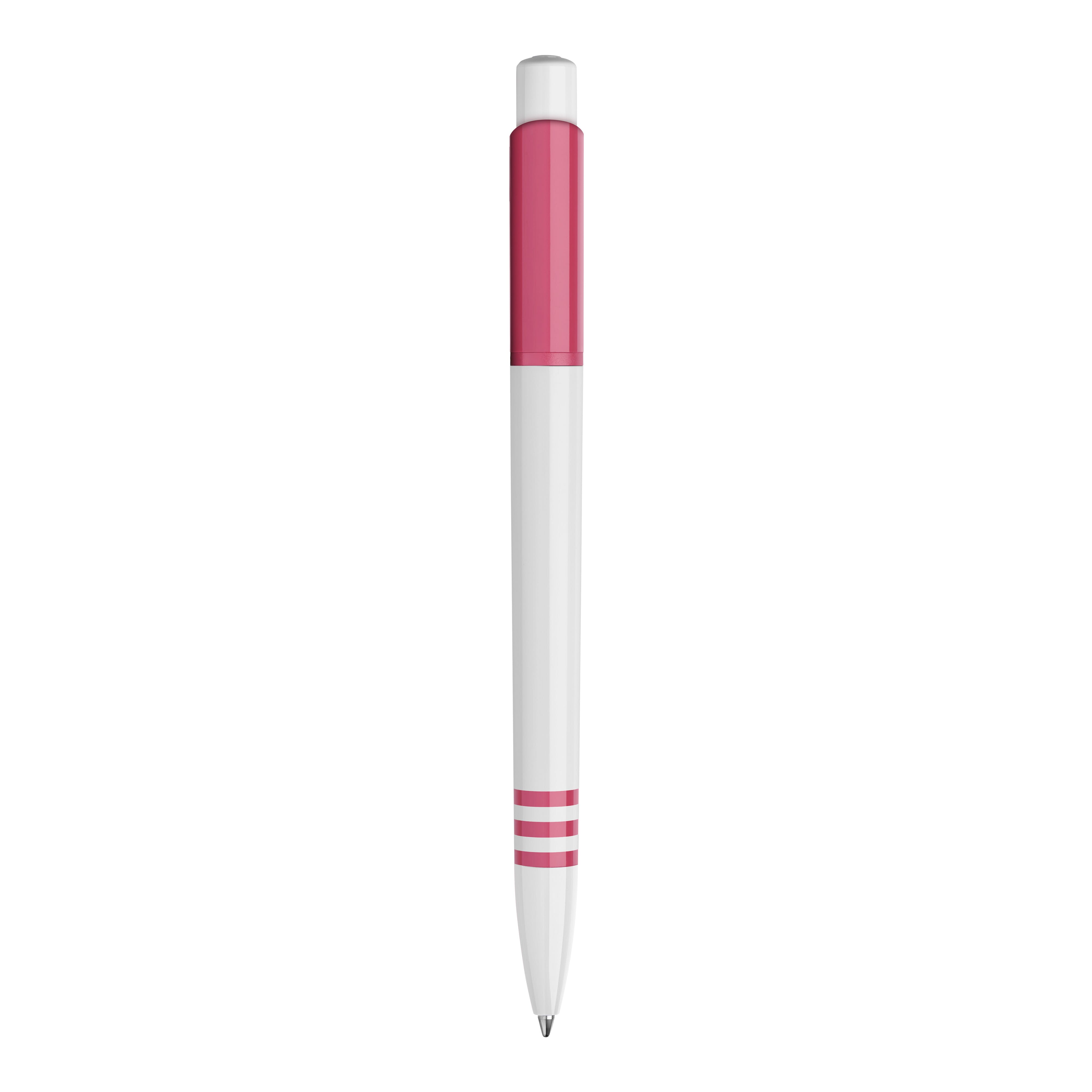 Der Hardcolour Kugelschreiber Tropic hat eine große Druckfläche auf dem Clip und dem Schaft. Eine ansprechende Kombination aus weißem Schaft und weißem Drücker sowie einem farbigen Clip. Der Schaft hat drei farbige Ringe in der gleichen Farbe wie der Clip. Druckkugelschreiber ausgestattet mit einer blau schreibenden Jumbo-Refill-Mine. Der Stift besteht aus ABS-Kunststoff und wird in Europa hergestellt. Ab einer Abnahmemenge von 5.000 Stück sind eigene Farbkombinationen möglich.