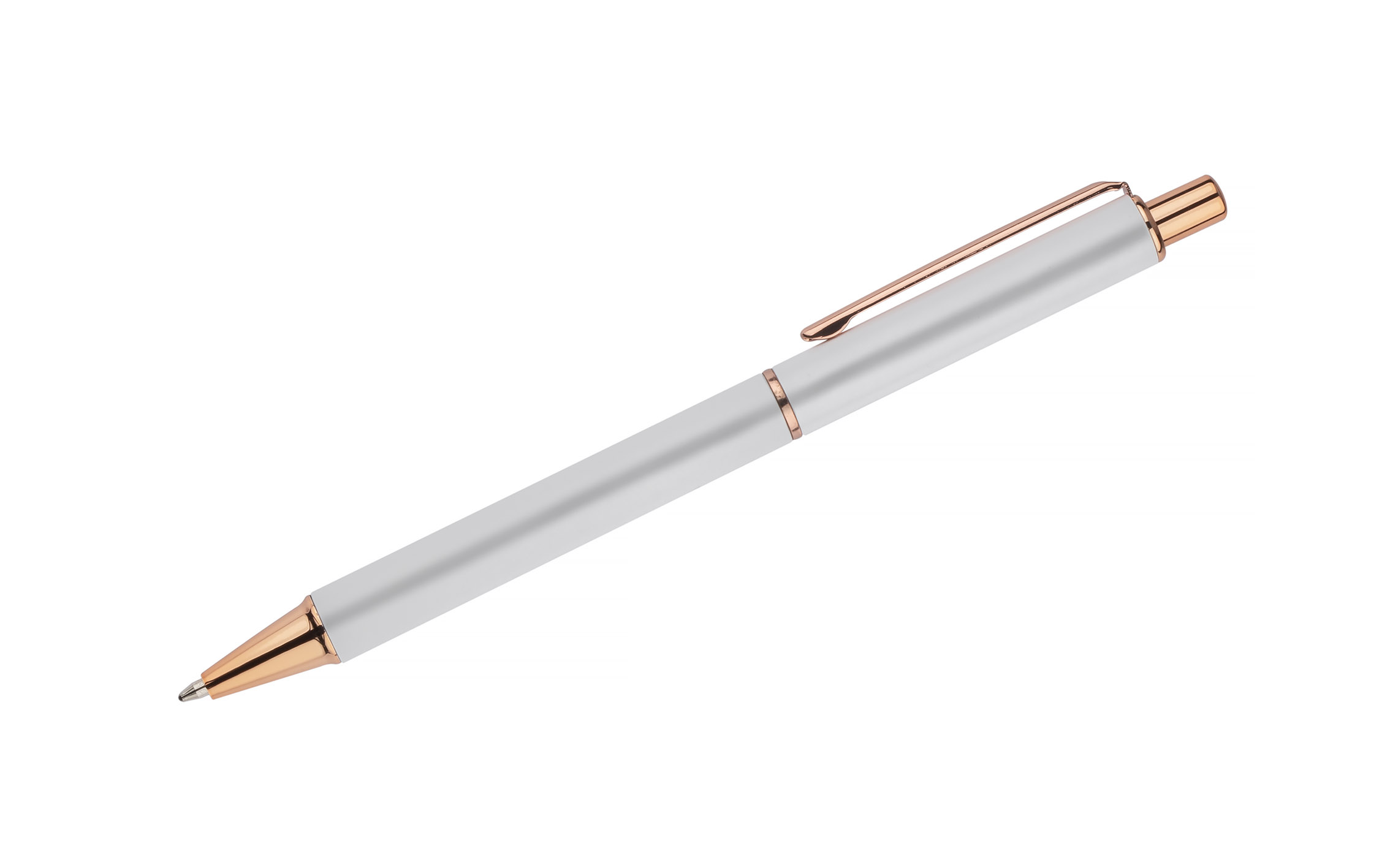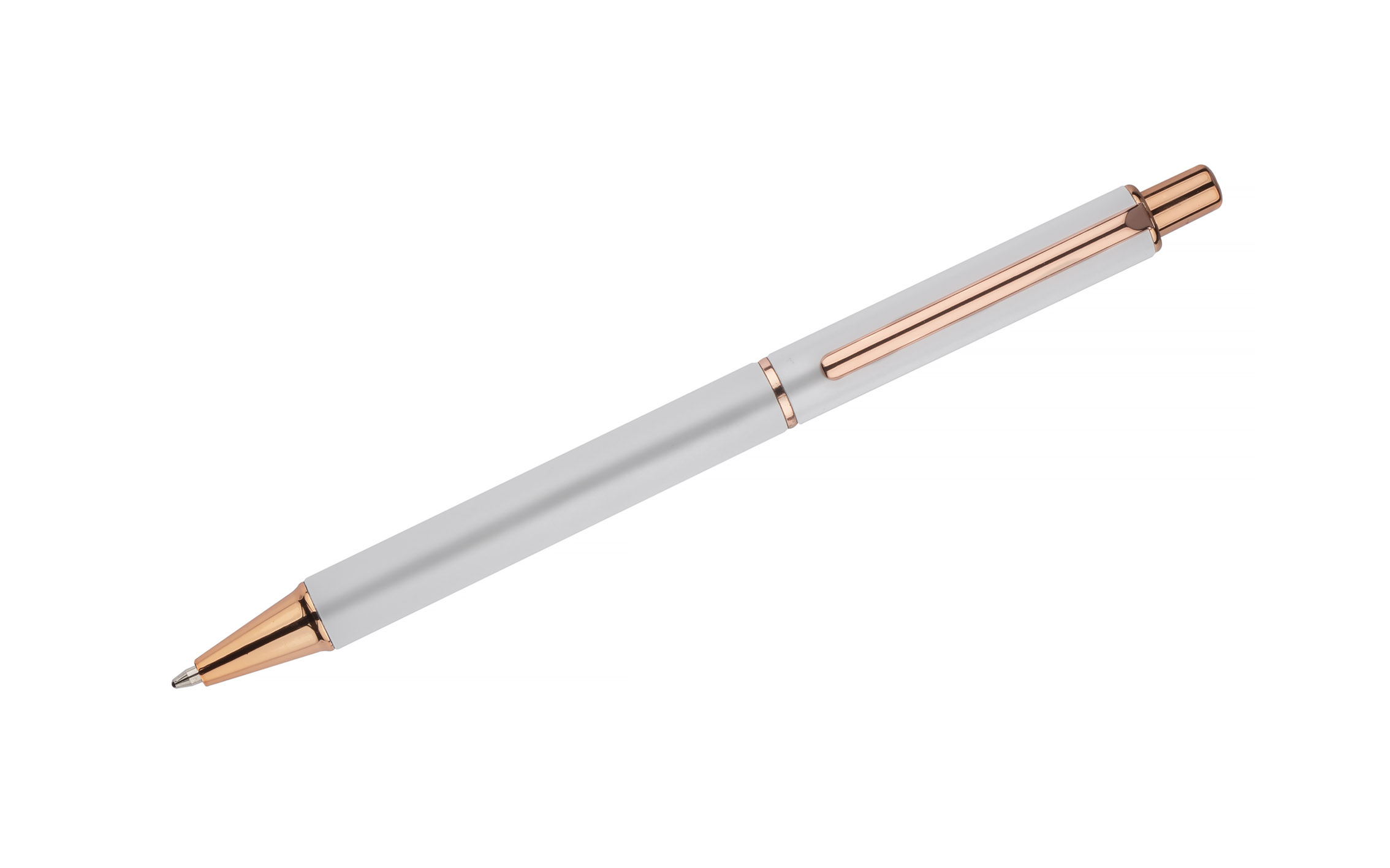 Kugelschreiber in Matt mit rosegoldenen Elementen. Der Schaft und der Clip sind aus Metall gefertigt