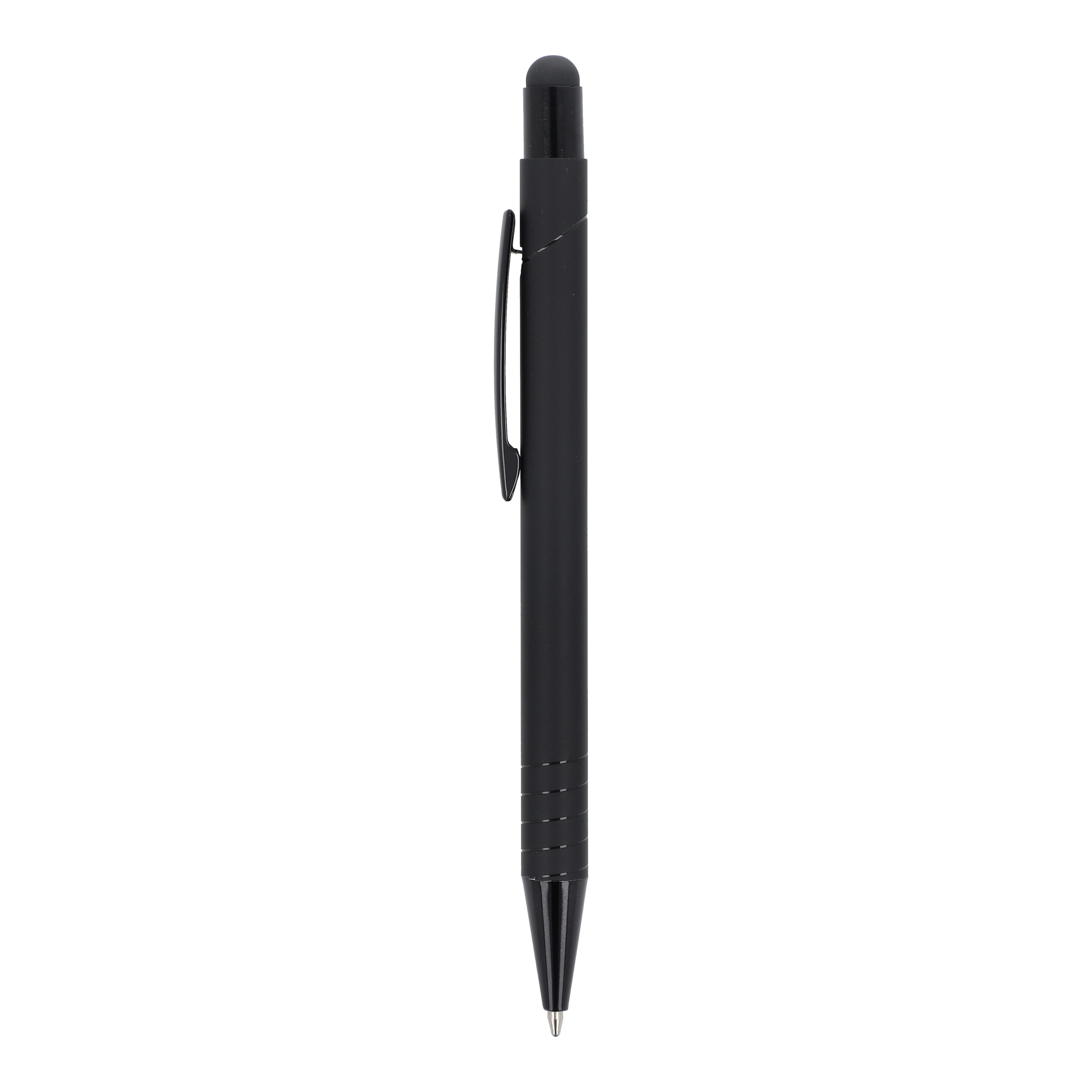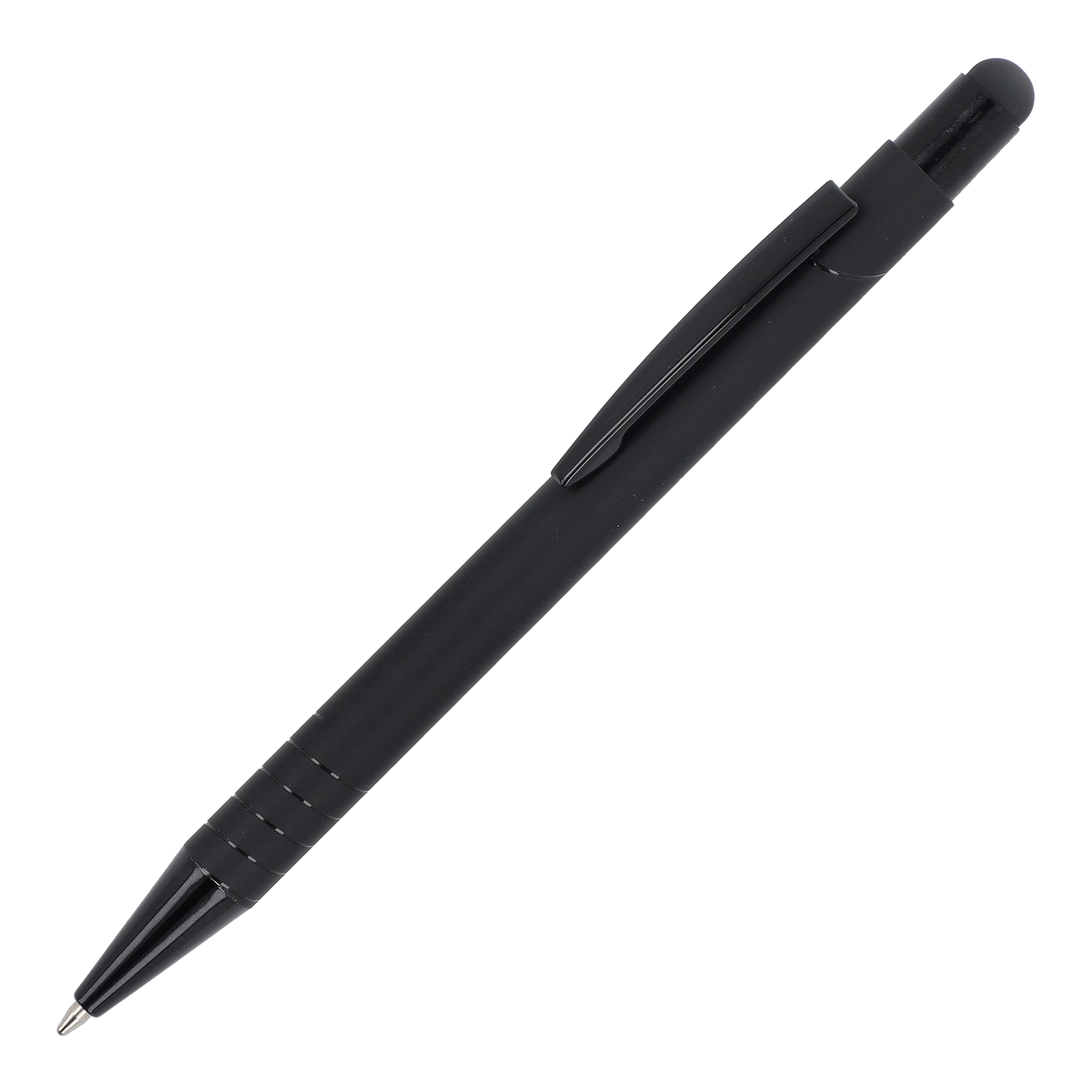 Kugelschreiber mit Metallclip, Stylus-Funktion und Softtouch-Oberfläche. Der Druckknopf, der Clip und die Ringe sind in passenden glänzenden Farben gehalten. Der Kugelschreiber wird mit einer blauen Jumbo-Mine geliefert.